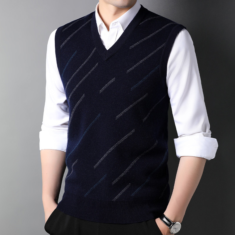 Главная страница > Мужской шерстяной жилет 2024 новый средний возраст V-образный вырез в полоску без рукавов жилет модный повседневный
