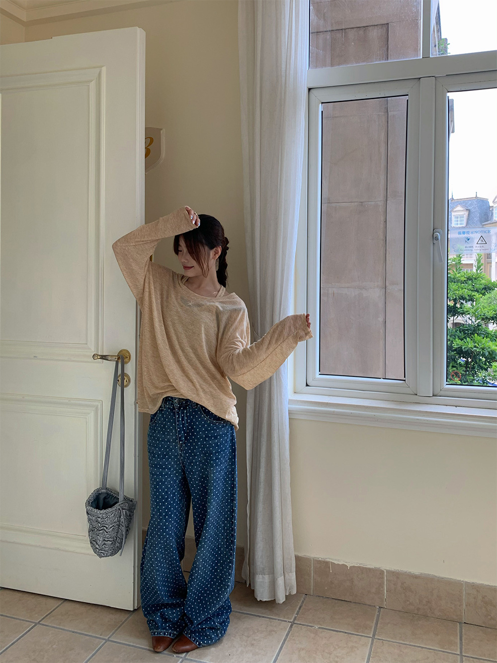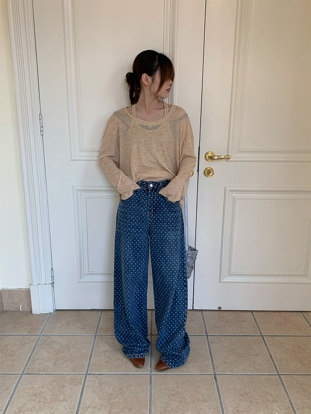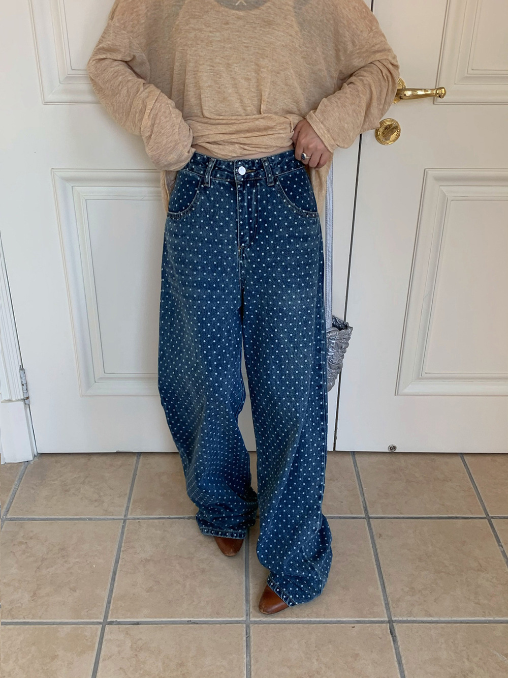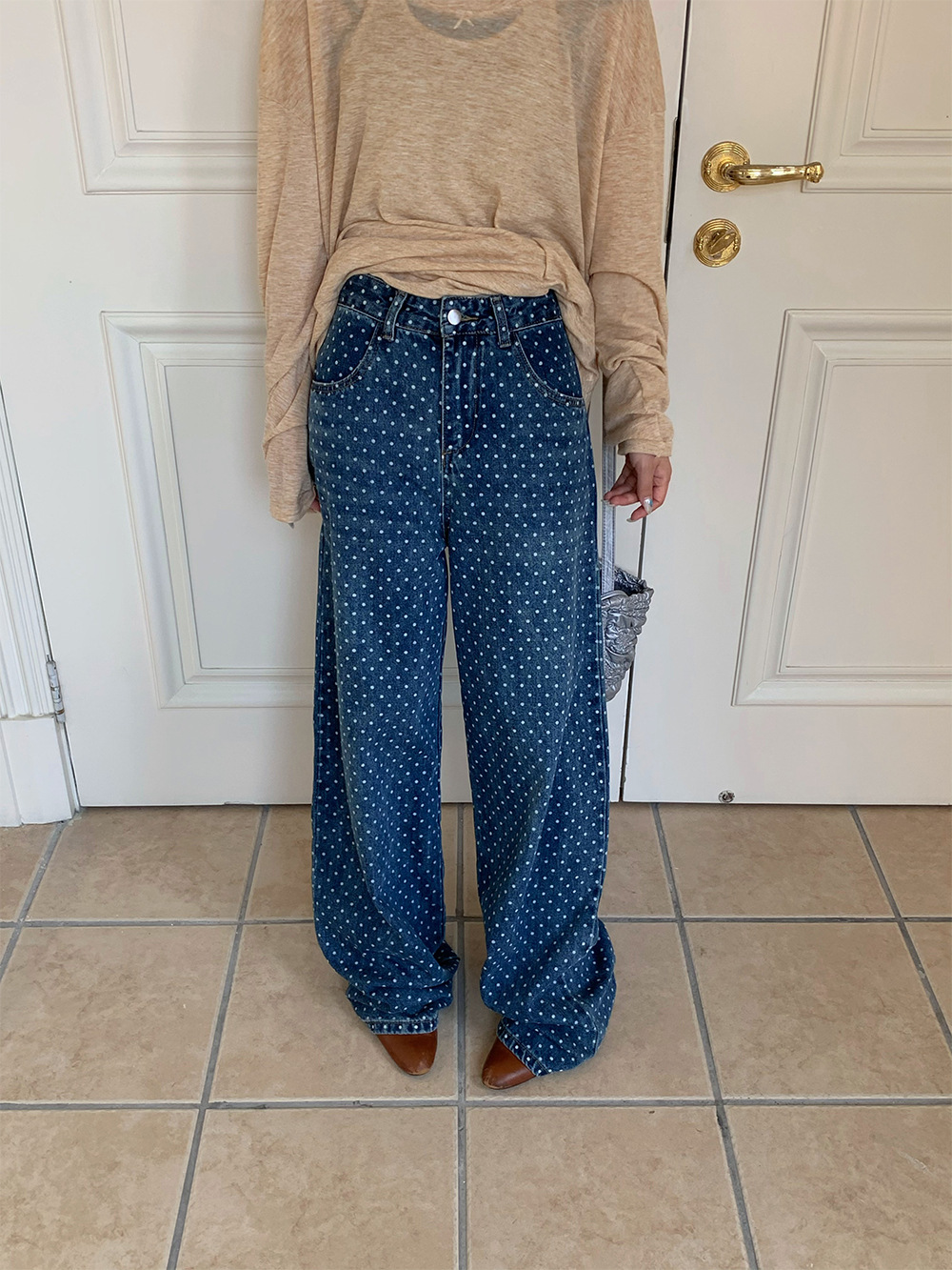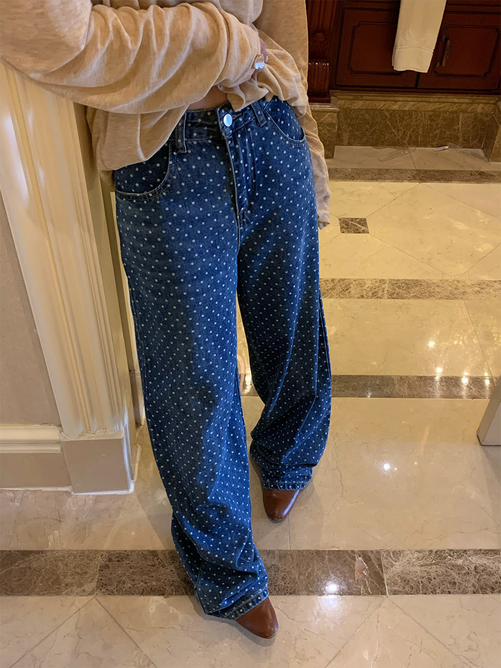 Главная страница > Yu Yi Сезонная большая распродажа 40% off Дизайнерские джинсы в горошек Женские повседневные широкие брюки с высокой талией в стиле ретро в стиле ретро 30496
