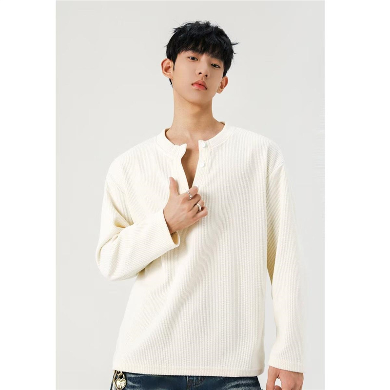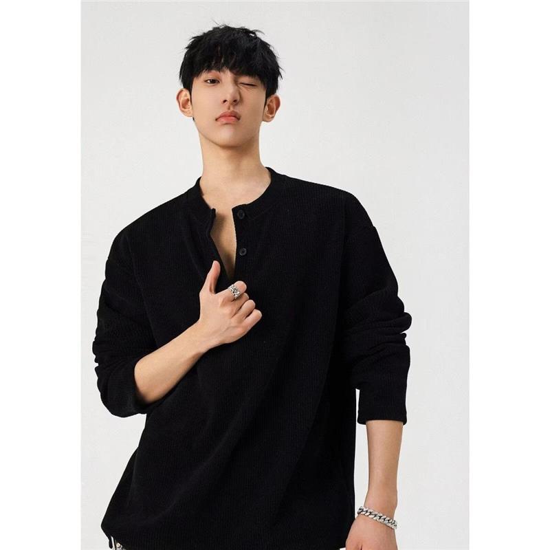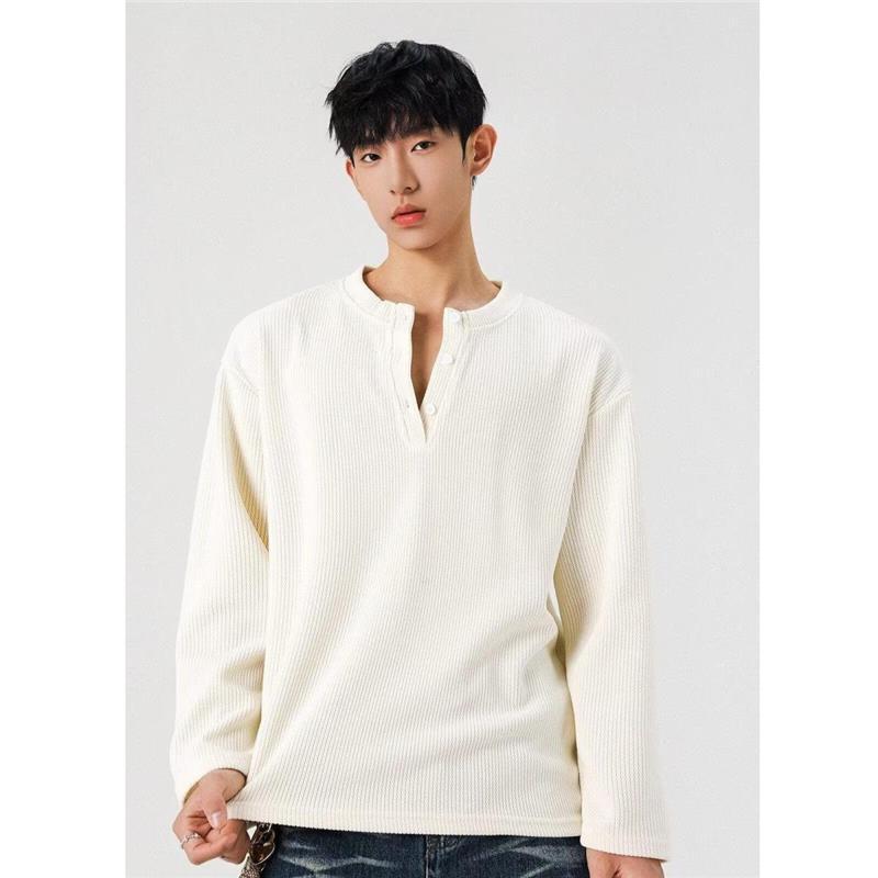 Главная страница > Мужская футболка с длинными рукавами, новинка весны, с небольшим v-образным вырезом, текстурой ногтей, однотонный свободный повседневный топ для фитнеса