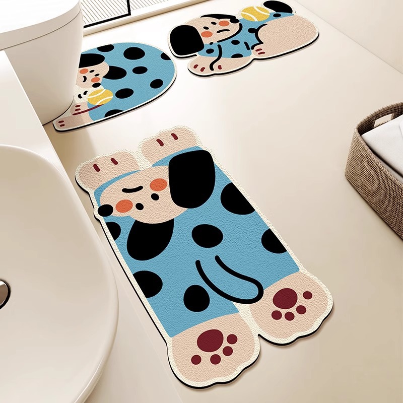 Главная страница > Мультяшный щенок напольный коврик для ванной три комплекта абсорбиционной противоскользящие коврики диатомовая грязь унитаз устойчивый к грязи и износостойкий унитаз U-образный коврик