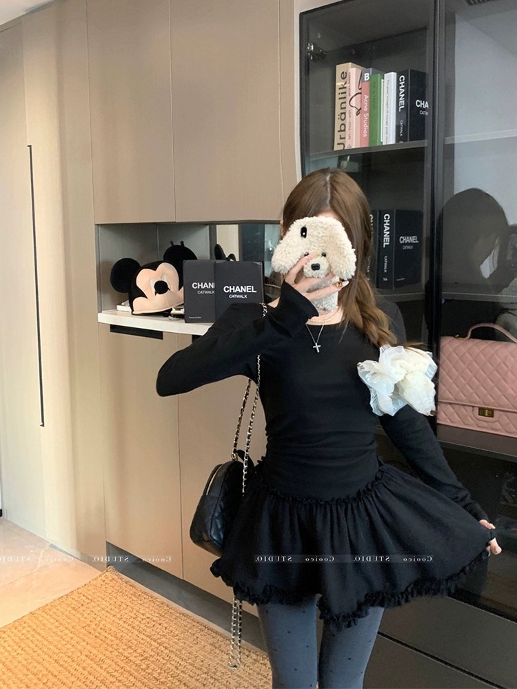 Главная страница > Корейская кружевная сшитая нижняя футболка с длинными рукавами женская осень-зима новая тонкая резьба