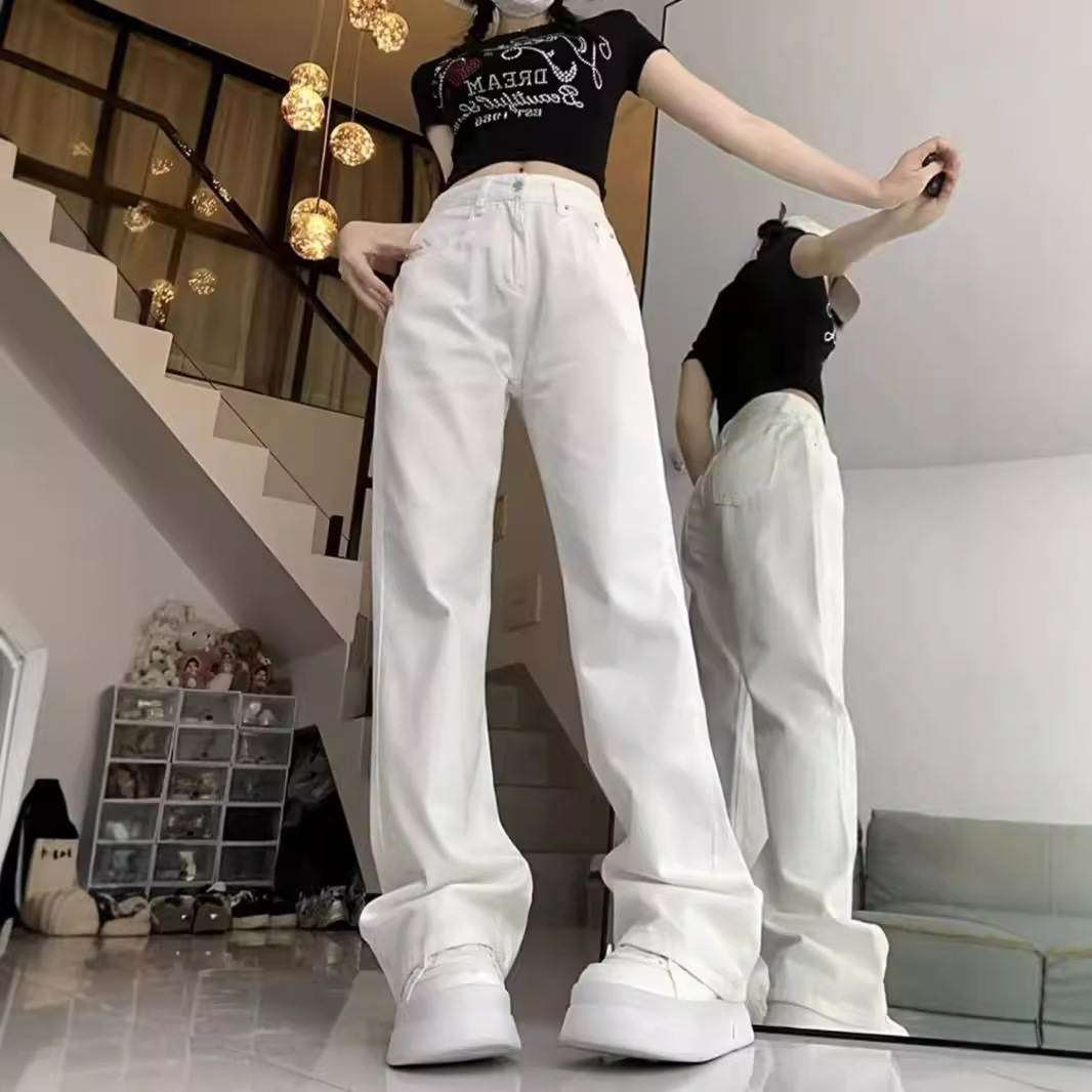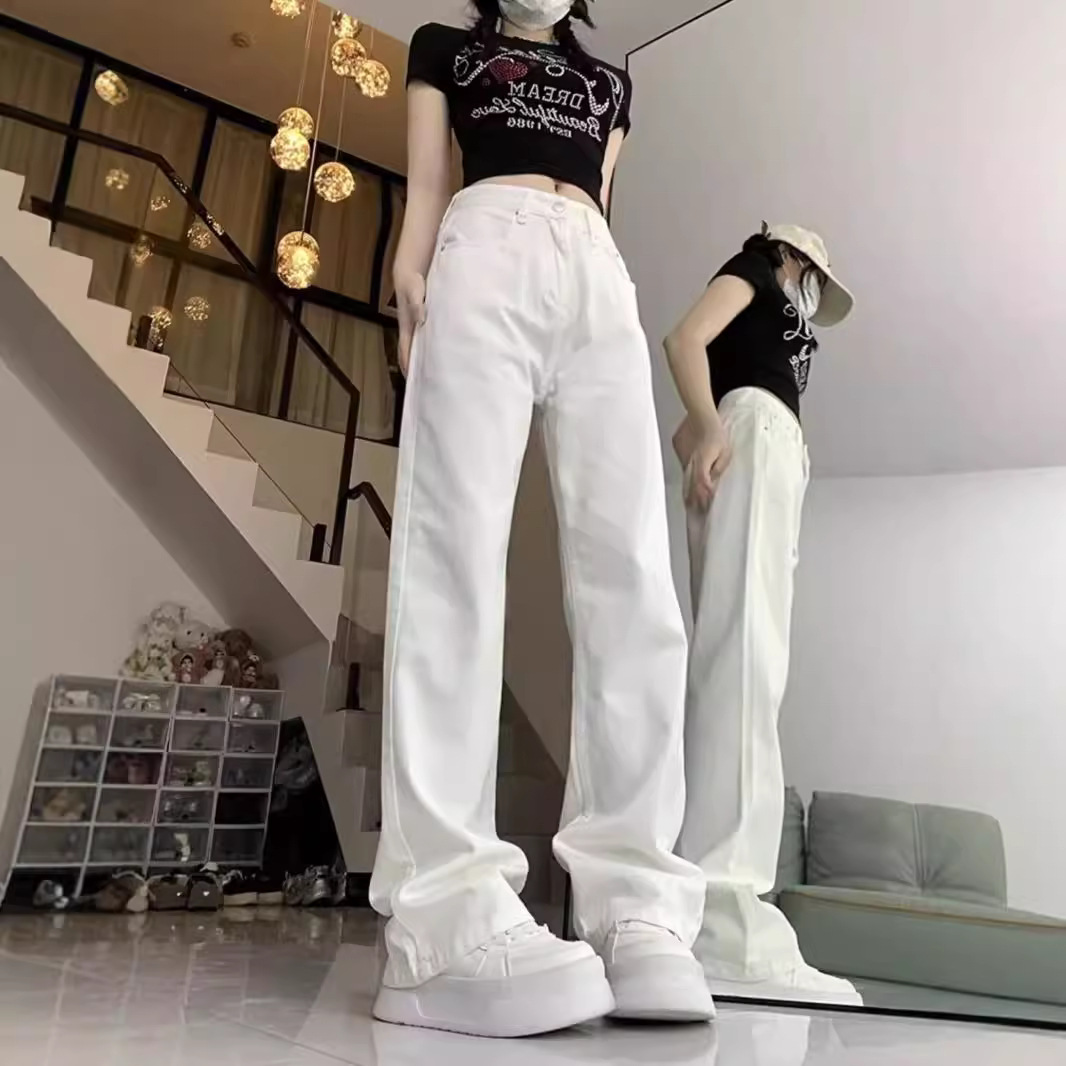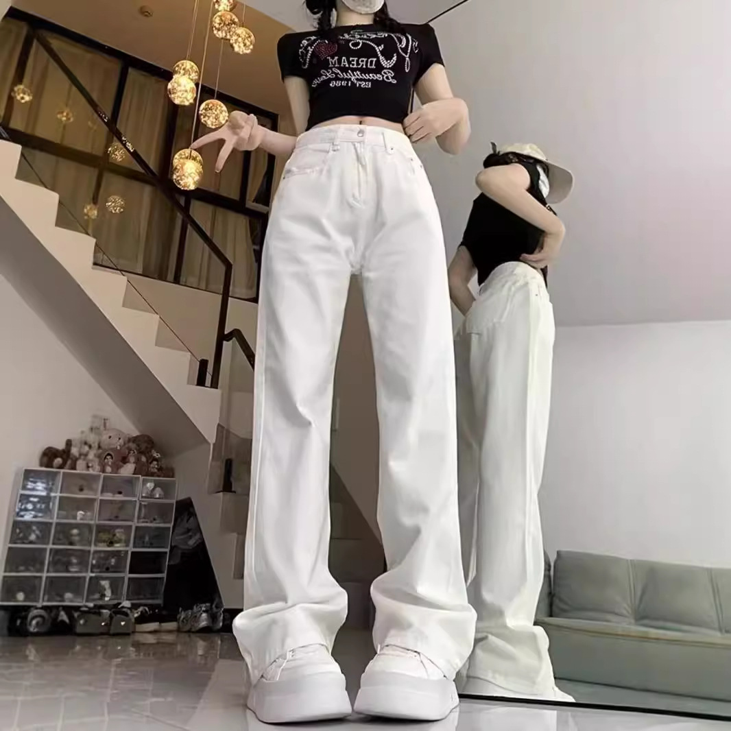 Главная страница > Широкие джинсы с высокой талией, свободные, женские белые, весна и осень 2024, большие размеры, тонкие и вертикальные прямые брюки