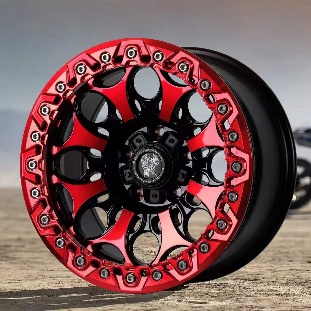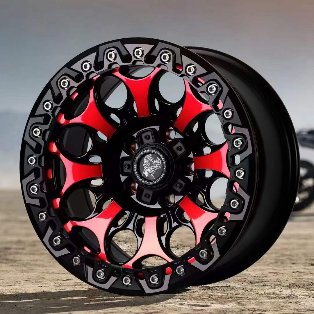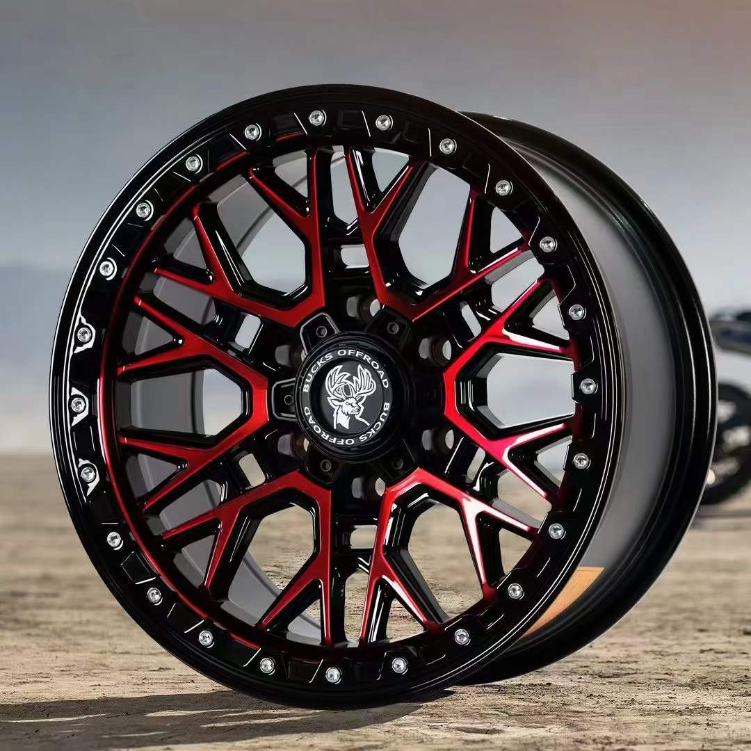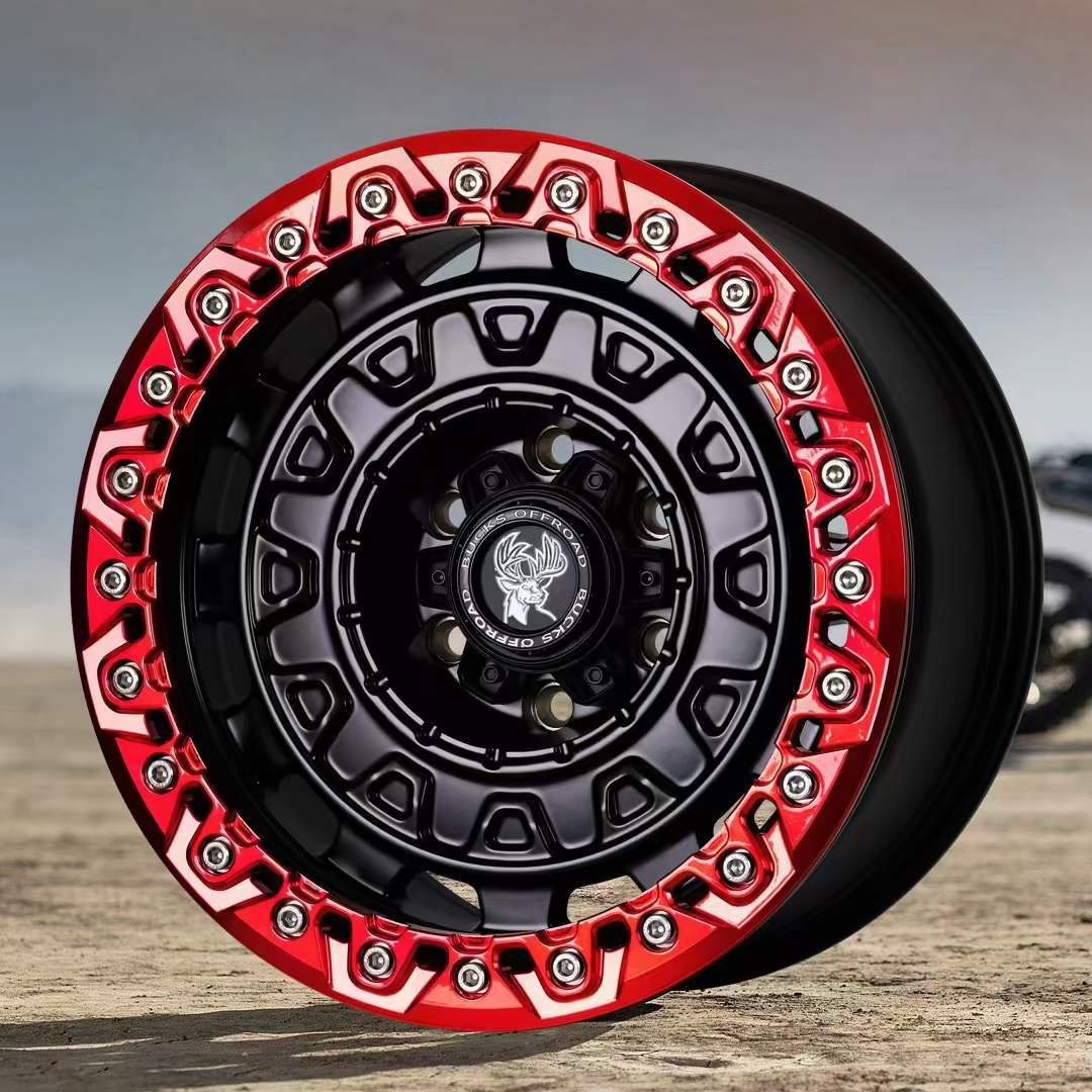 17x8,5J-B502 [матовая черная красная поверхность + черная нажимная пластина]