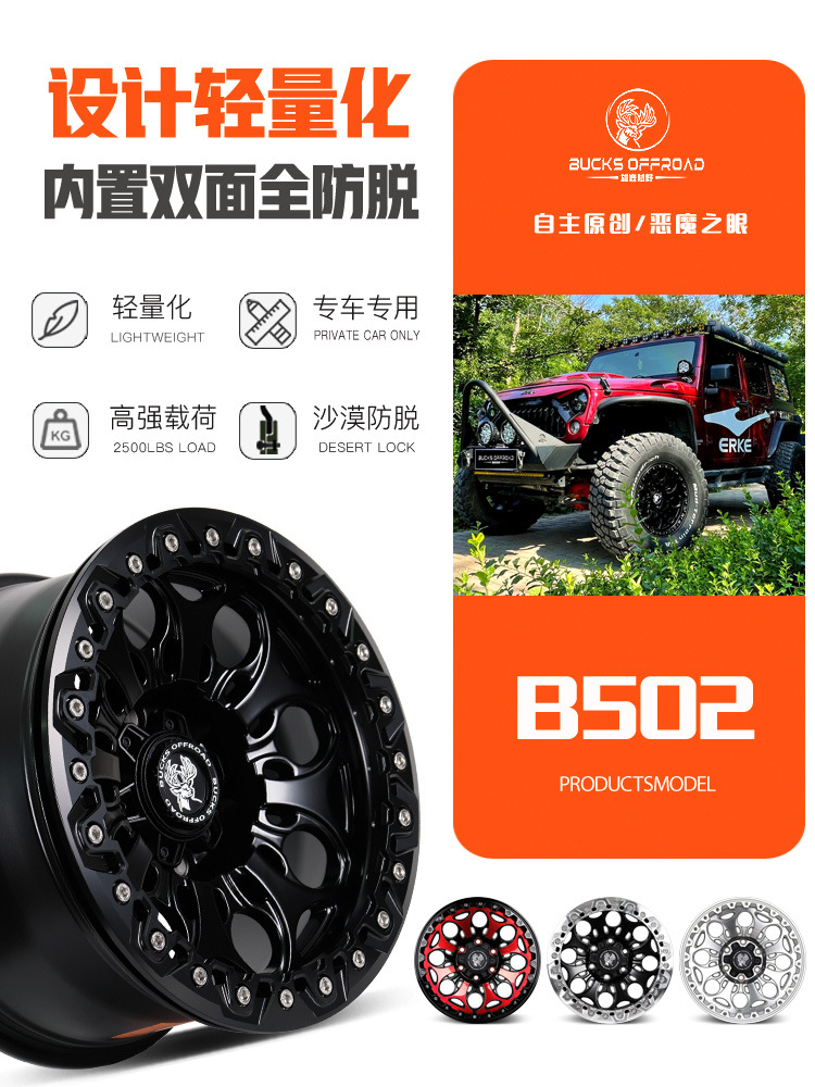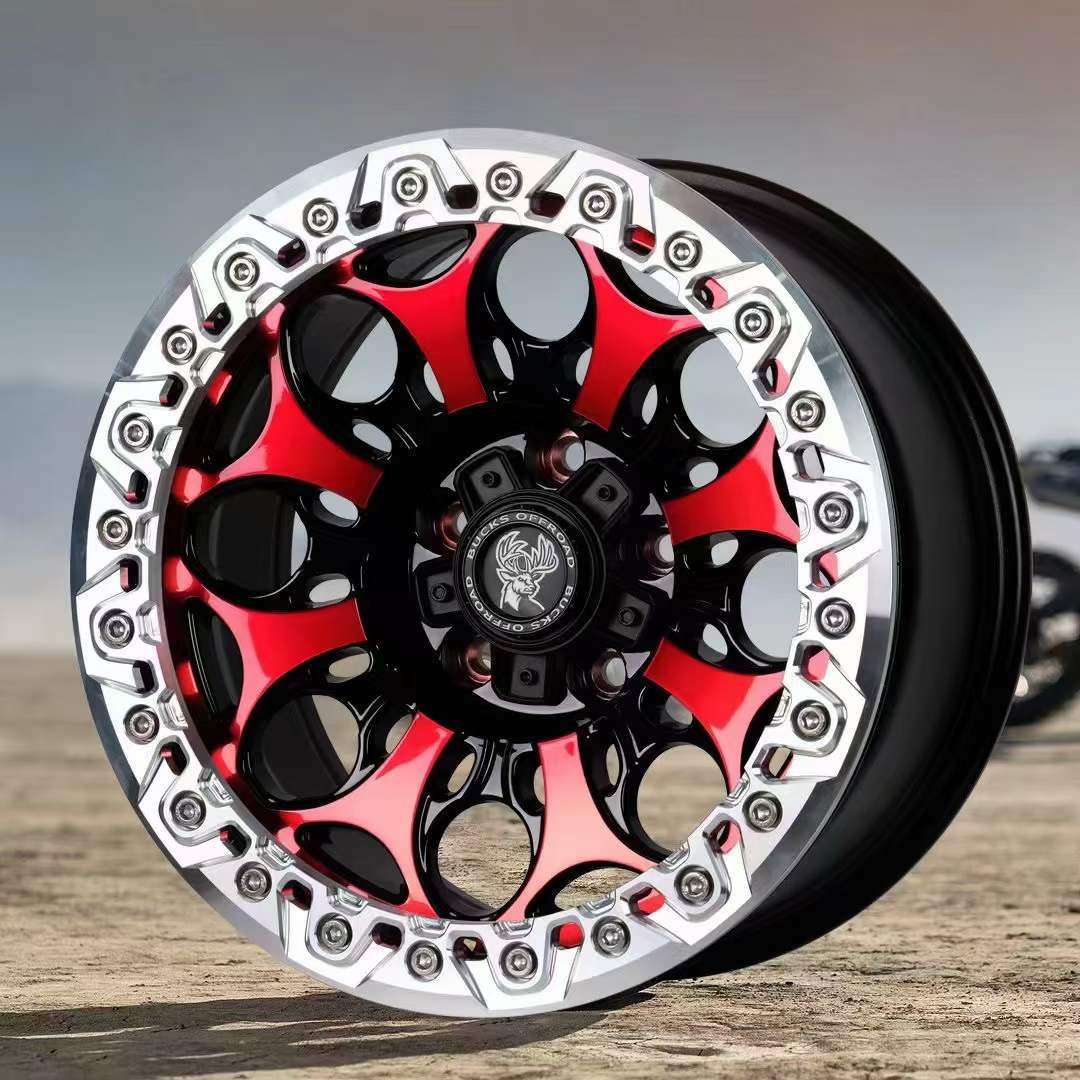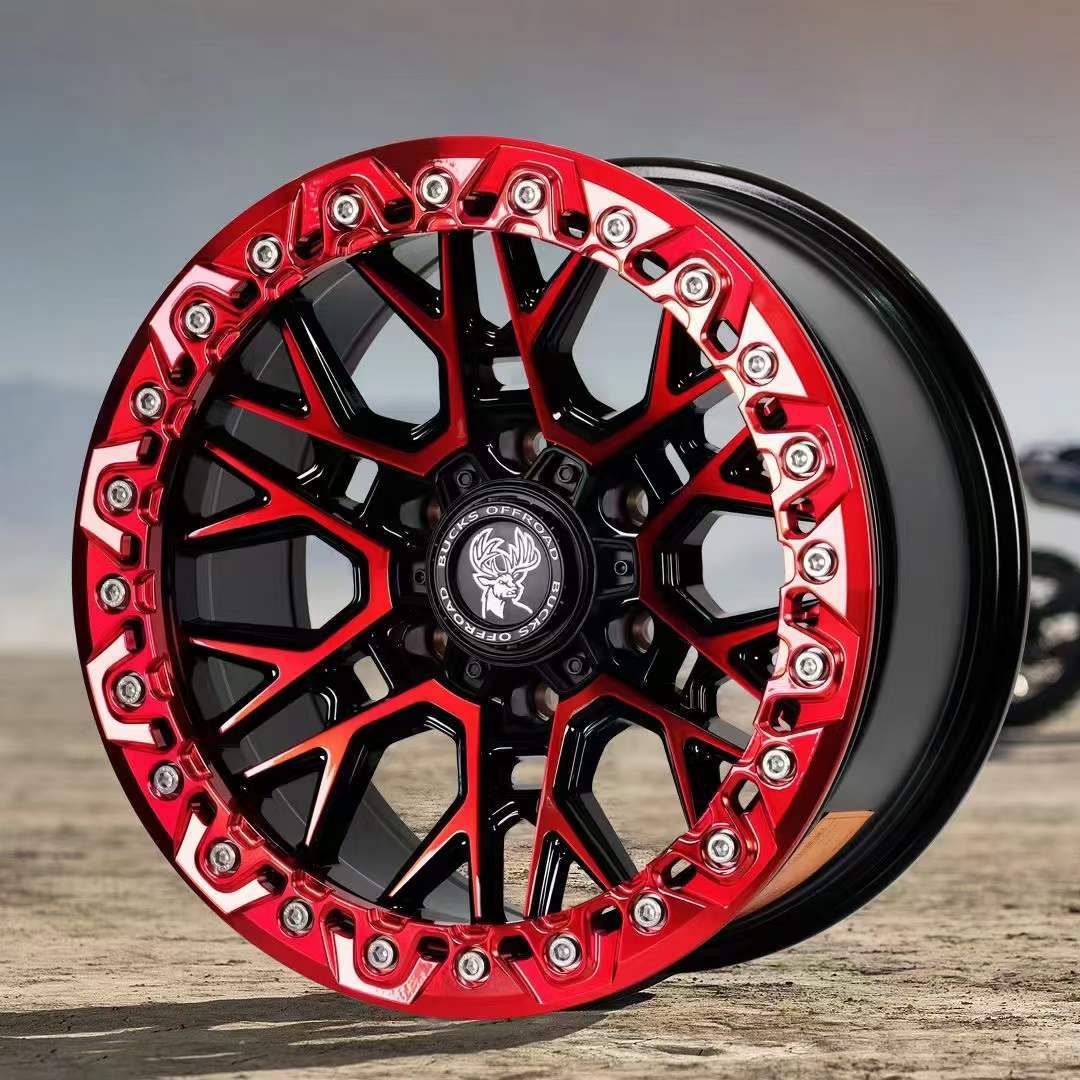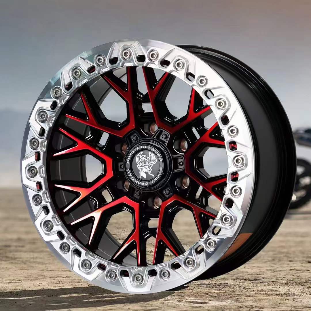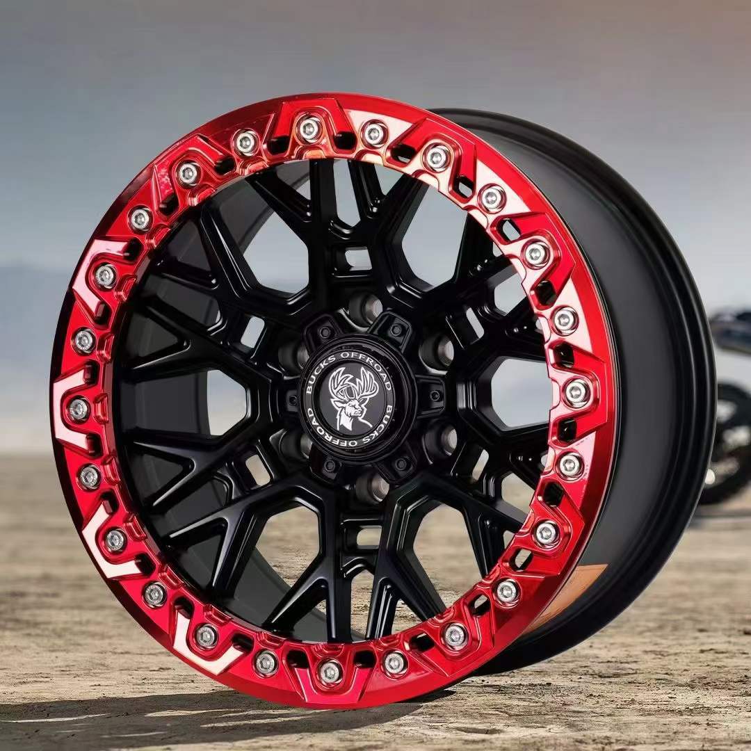 17x8,5J-B502 [матовая черная красная поверхность + черная нажимная пластина]
