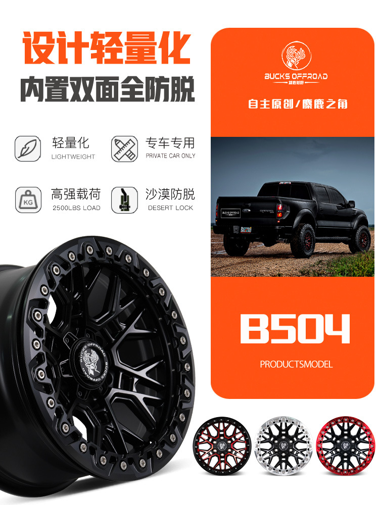 17x8,5J-B504 [матовая черная красная поверхность + черная нажимная пластина]