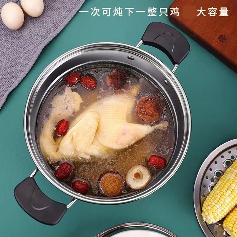 Главная страница > Очень толстая немагнитная кастрюля для приготовления на пару с одной решеткой, пароварка для супа из нержавеющей стали, двухслойная утолщенная кастрюля для супа, бытовая индукционная плита, газовая плита