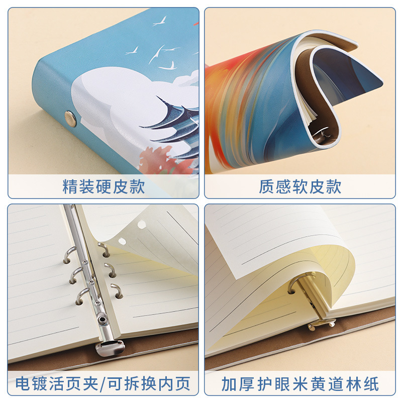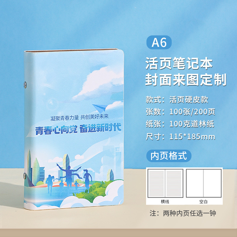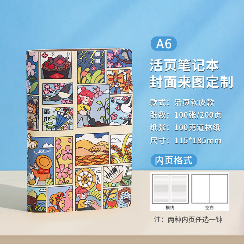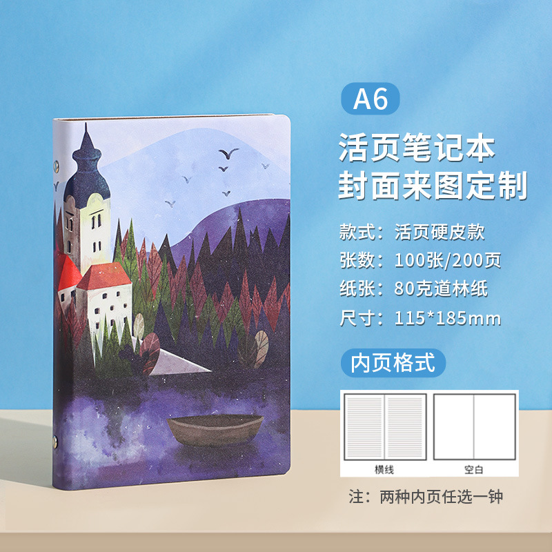 Модель A6 с мягкими обложками, цветной печатью и листами на кольцах [80 г, 100 листов бумаги Dowling]