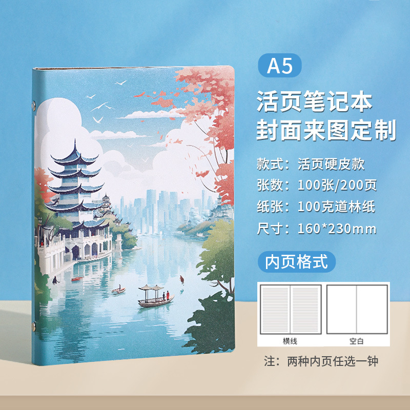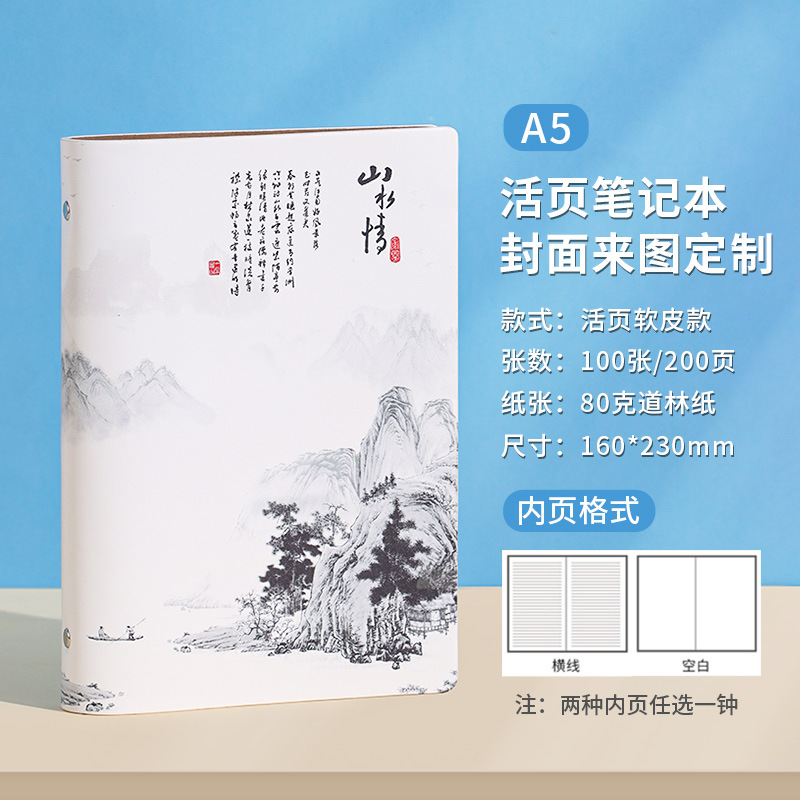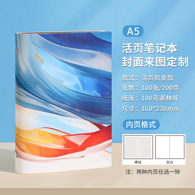 Модель A5 с мягкими обложками, цветной печатью и листами на кольцах [80 г, 100 листов бумаги Dowling]