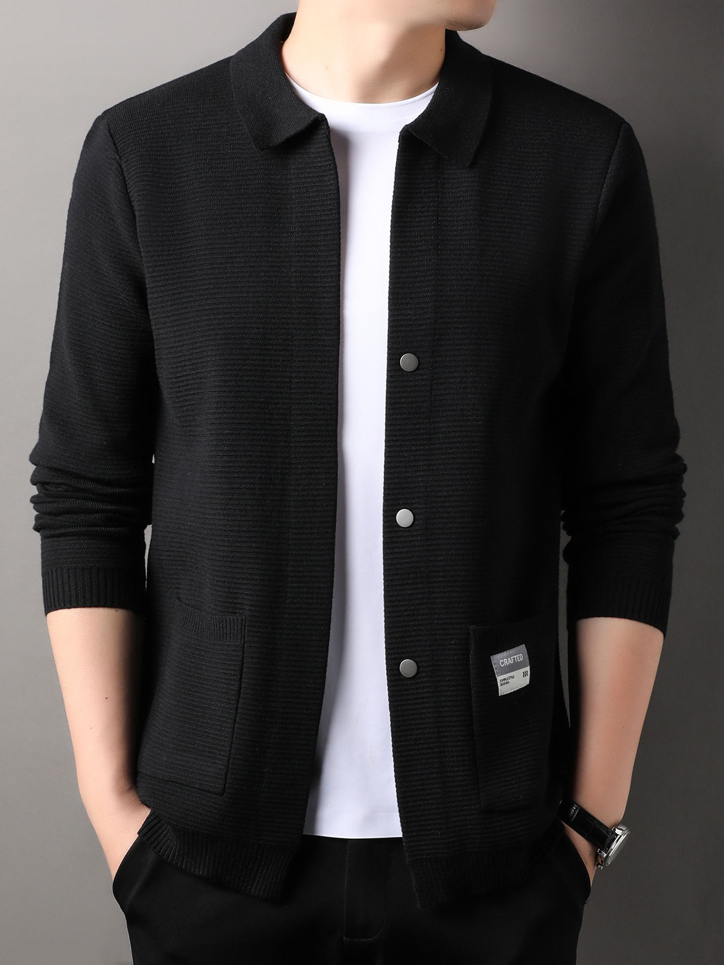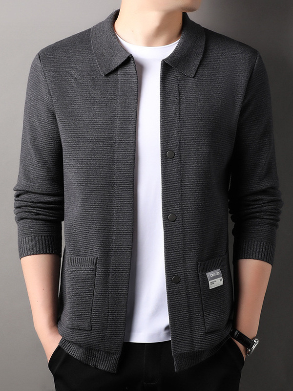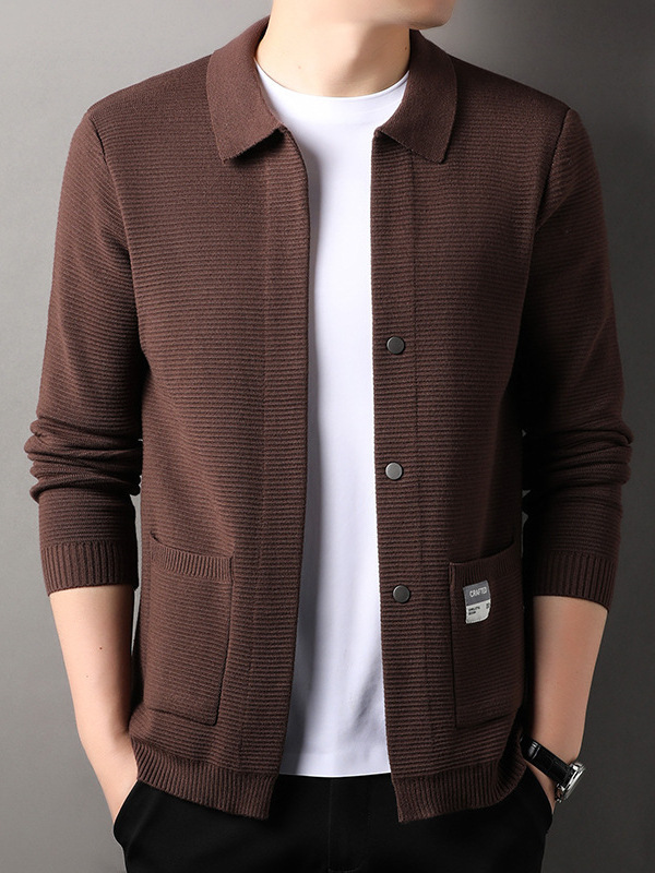 Прямая трансляция в том же стиле, весенне-осенний мужской вязаный кардиган, модная высококачественная куртка, повседневный свитер с лацканами, топ с карманами