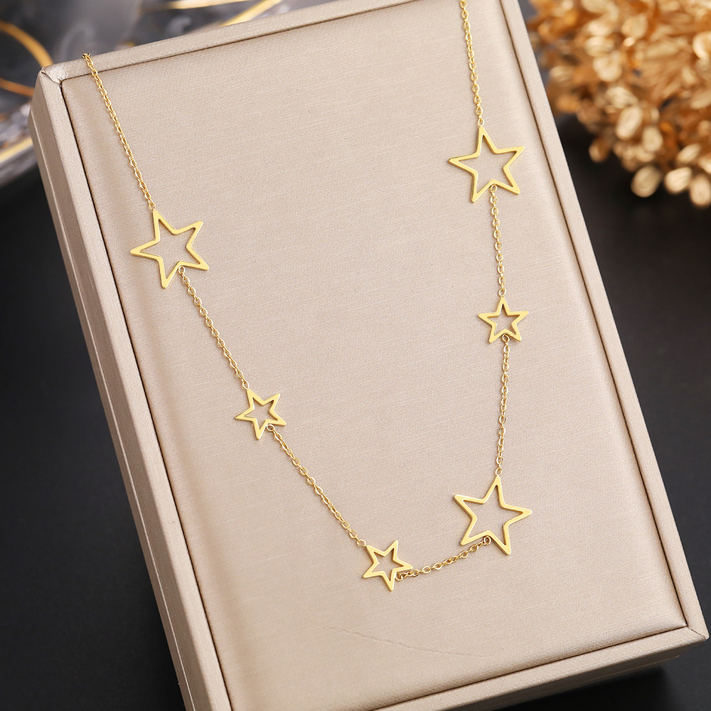 Главная страница > Новое ожерелье из титановой стали женский ретро стиль полый пятиконечная цепочка ключицы модная минималистская шея сетка красная прямая трансляция
