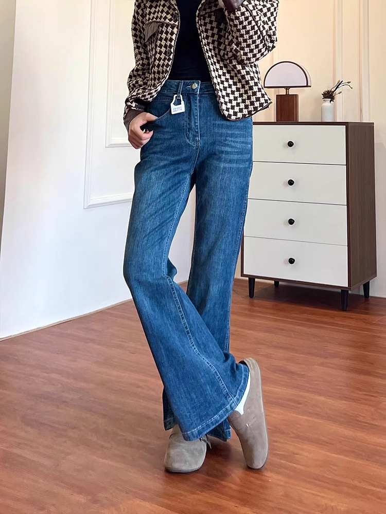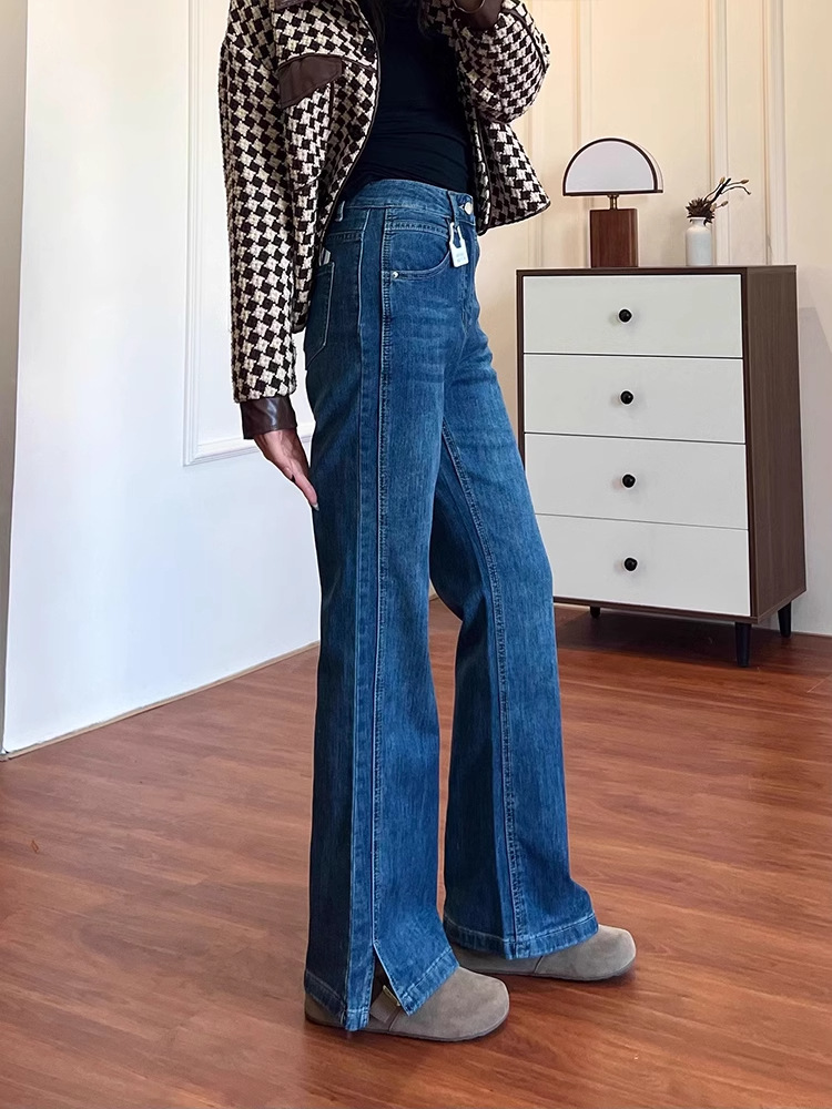 Главная страница > Женские эластичные расклешенные джинсы в американском стиле, новые весенне-осенние облегающие расклешенные брюки длиной до пола больших размеров.