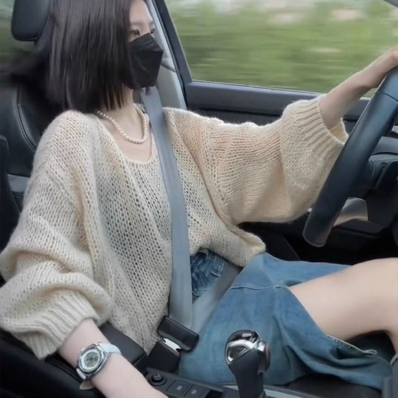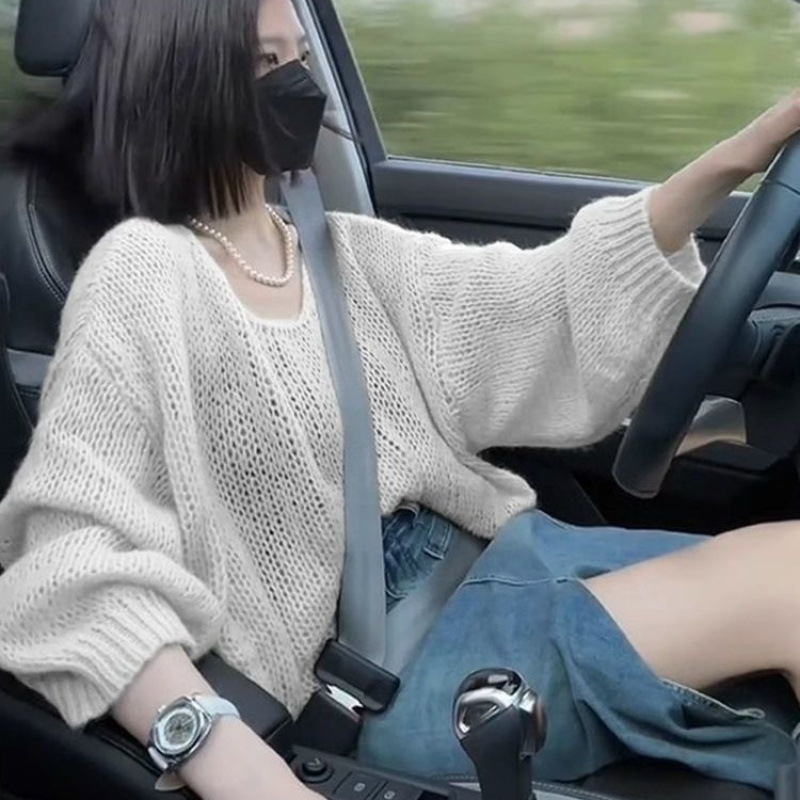 Нежная мягкая клейкая летучая мышь с полым трикотажным свитером