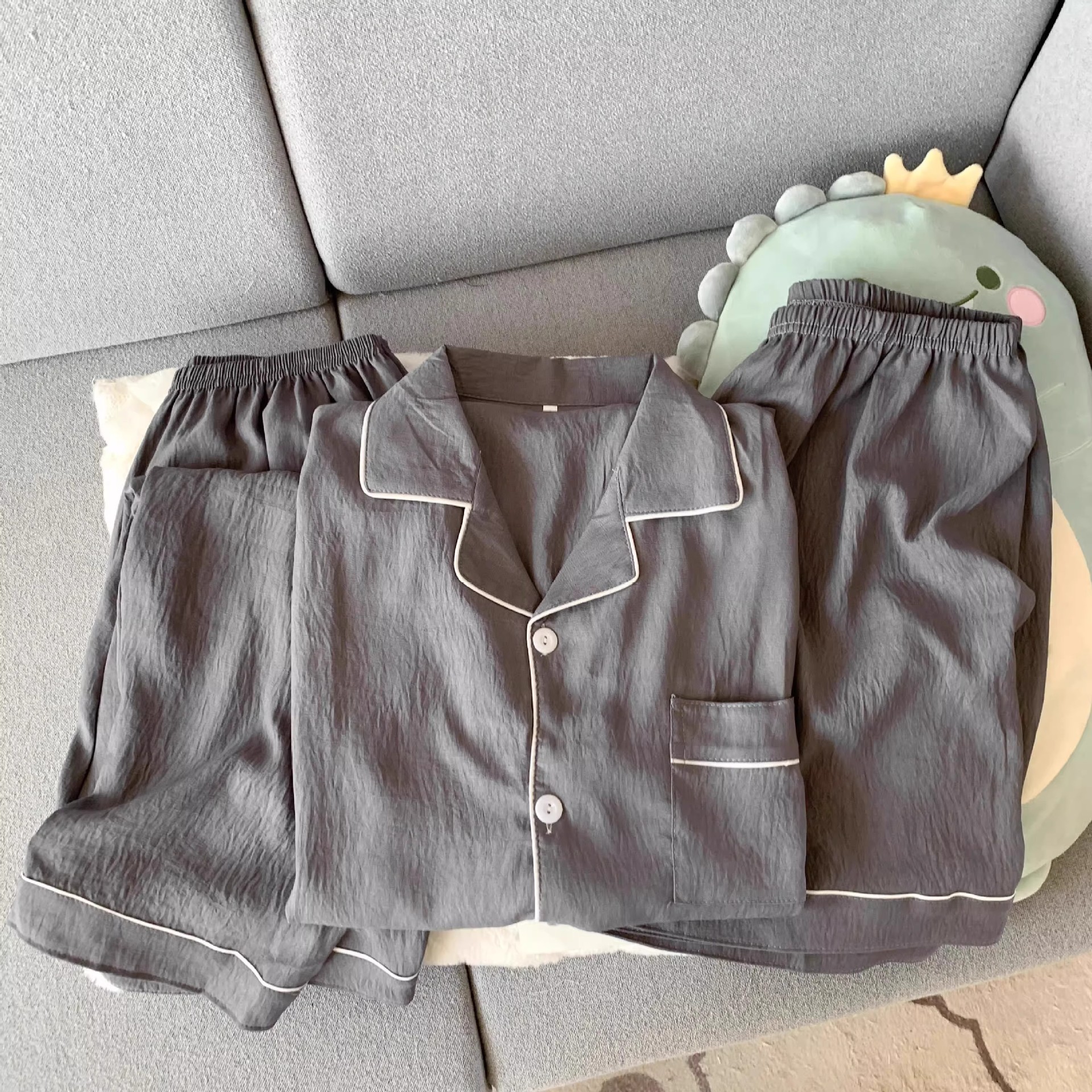 Летние мужские пижамы, милые облака из рыбьей кости, хлопчатобумажные марлевые шорты с короткими рукавами и брюки, простой и удобный комплект домашней одежды из трех предметов.