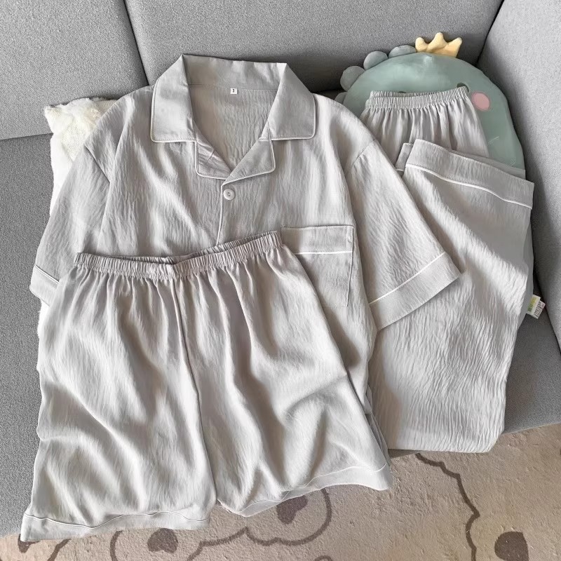 Главная страница > Летние мужские пижамы, милые облака из рыбьей кости, хлопчатобумажные марлевые шорты с короткими рукавами и брюки, простой и удобный комплект домашней одежды из трех предметов.