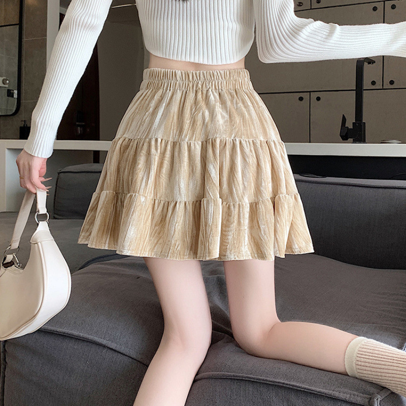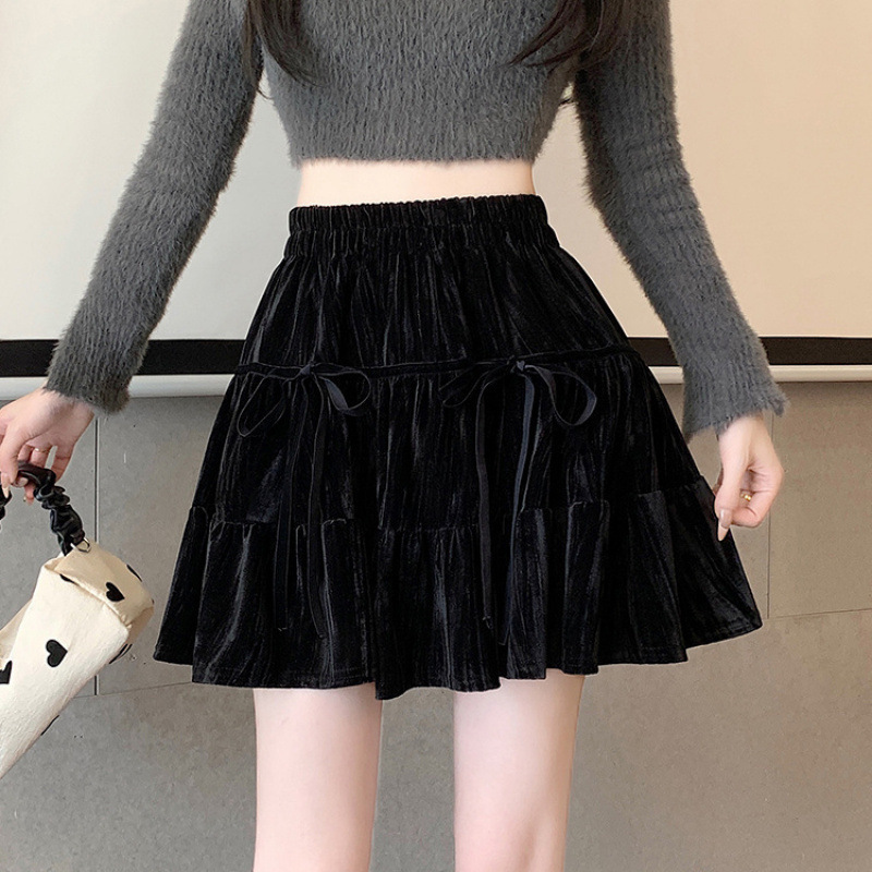 Главная страница > Черная золотая бархатная юбка для торта Юбка Юбка Женская осень Зима 2024 новая эластичная и высокая талия тонкая пушистая юбка