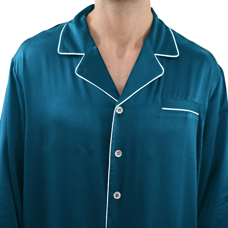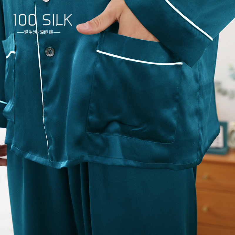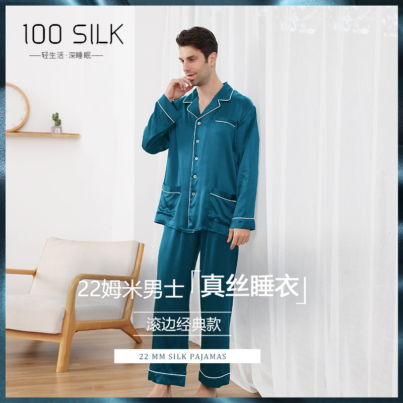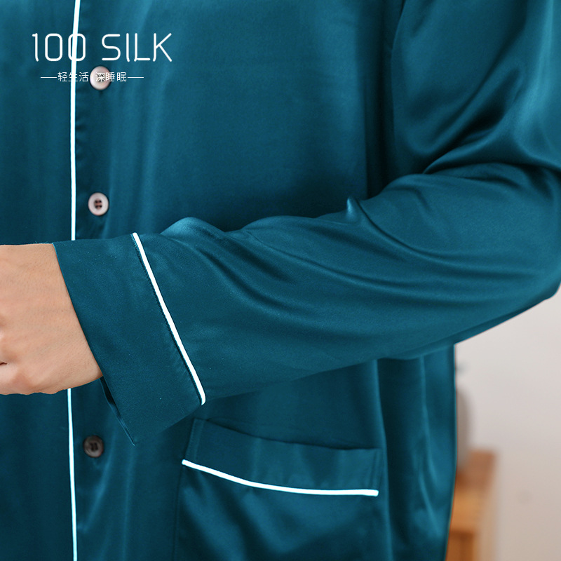 Главная страница > Мужской шелковый пижамный комплект из тяжелого шелка тутового шелкопряда 22 мм, с длинными рукавами и брюками, комфортный для сна, элитная домашняя одежда