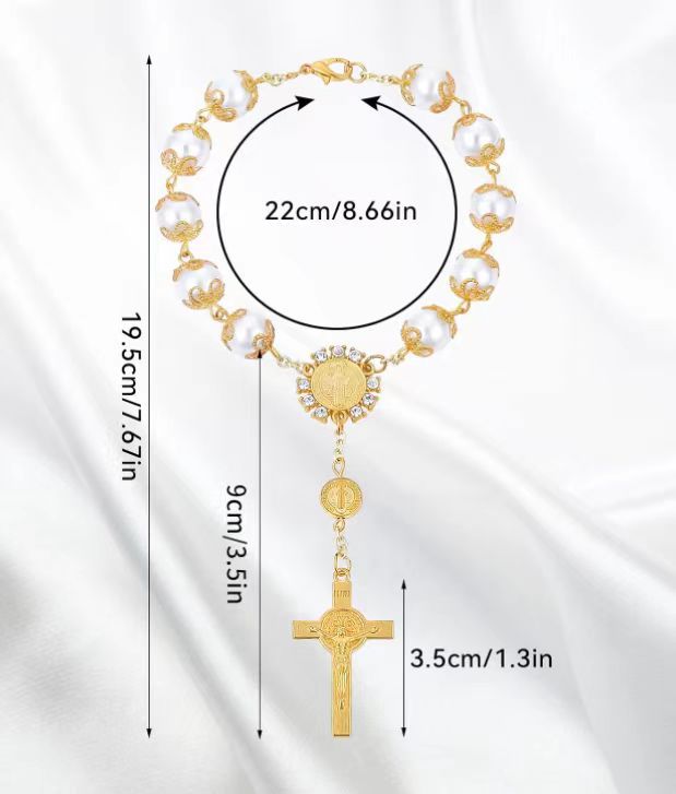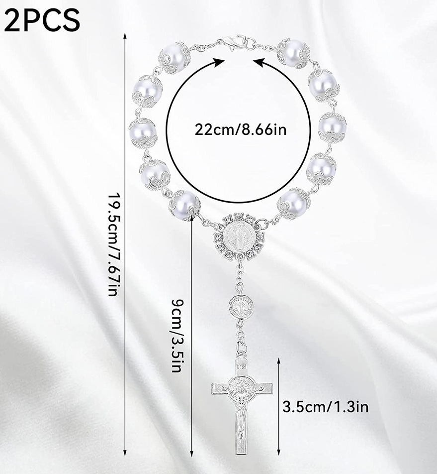 Браслет розария Золотое серебро кружева стекло имитация жемчужного креста Браслет браслет из бисера rosary