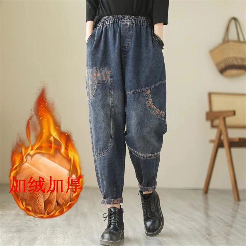 Главная страница > Женские джинсы больших размеров, осень 2022, женские свободные гаремные брюки с эластичной талией, стройнящие толстые сестры
