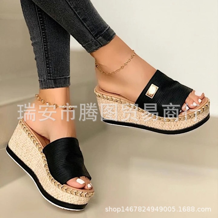 Главная страница > Внешняя торговля тапочки для женщин 2020 Новые туфли на танкетке больших размеров, модные сандалии Amazon Wish 43 женщины