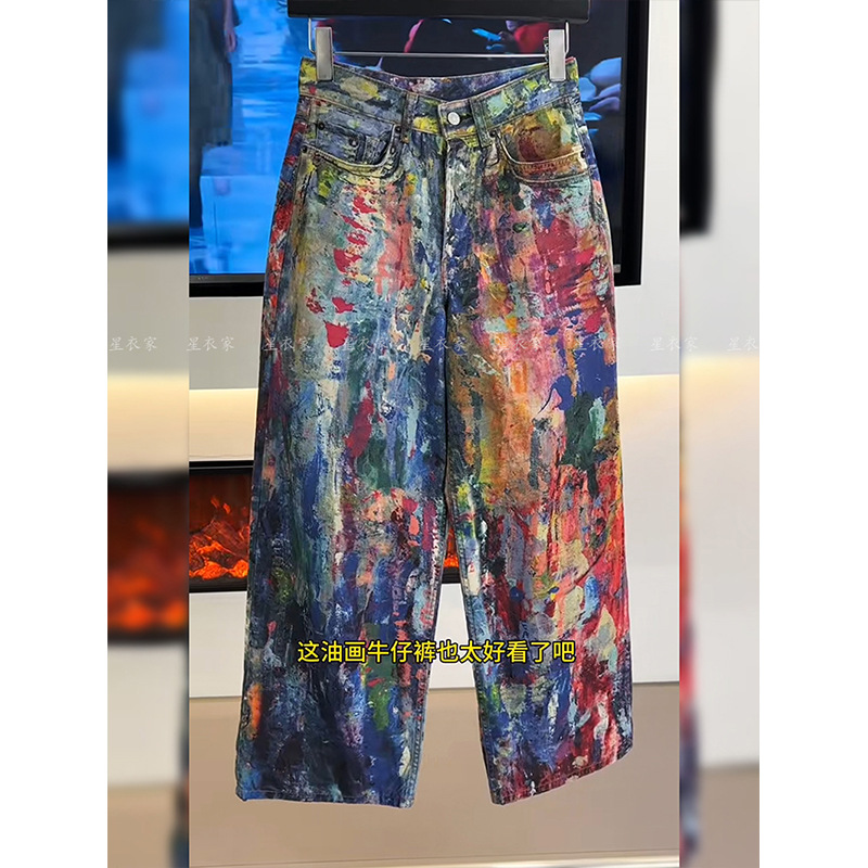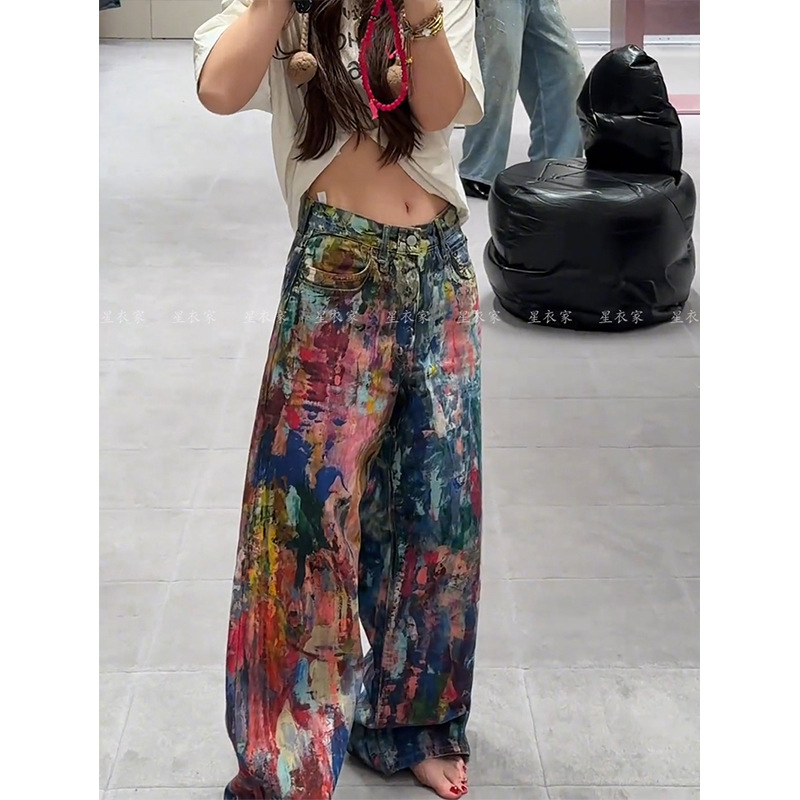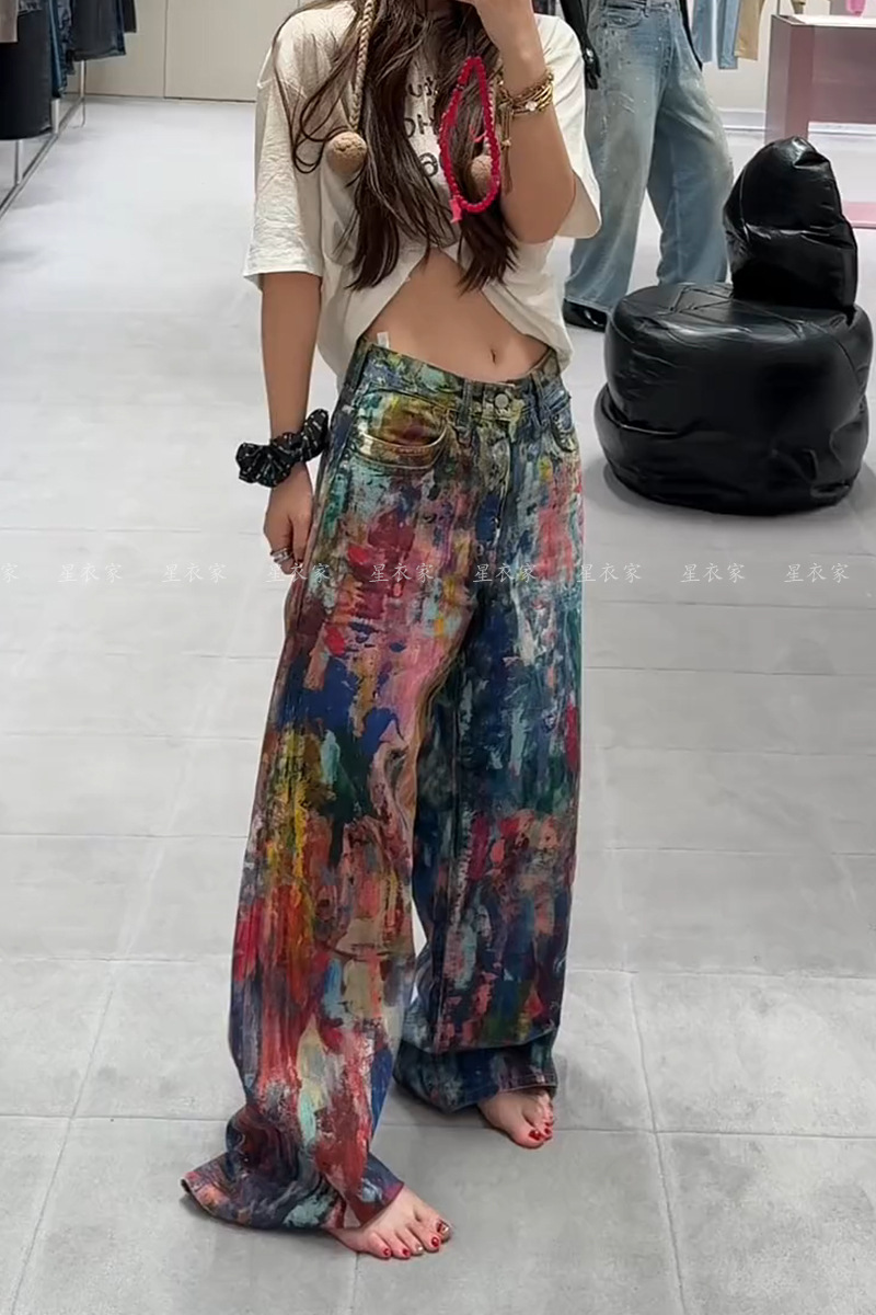 Главная страница > Американский ретро мойка тушью краску маслом палитра джинсы дети 2025 весна горячая девушка 3D цветная печать швабры брюки
