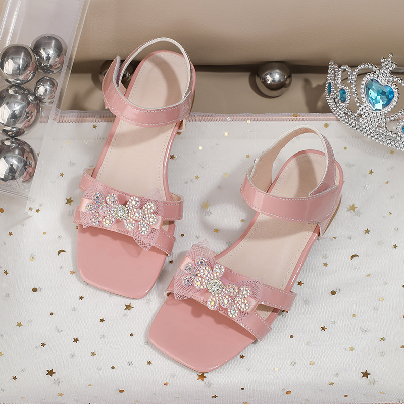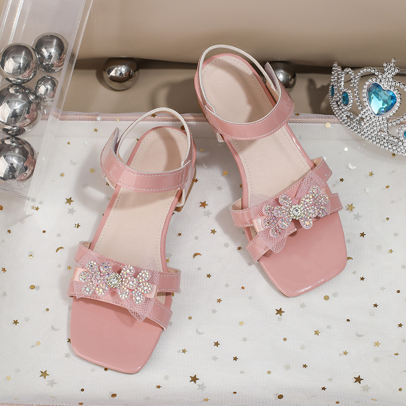 Главная страница > Трансграничные розовые детские сандалии 2024 новые мягкие донные стразы с толстым каблуком детские сандалии принцессы обувь мода фея ветра оптом