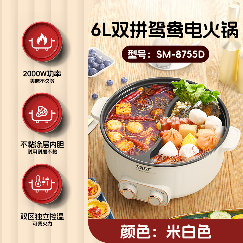 Главная страница > SAST домашний шабу-шабу многофункциональный электрический горячий горшок двойной контроль