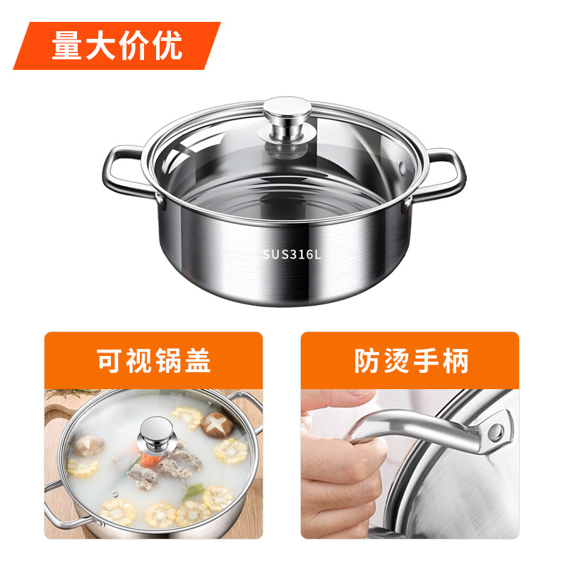 Толстая кастрюля из нержавеющей стали 316 кастрюля без покрытия для прозрачного супа