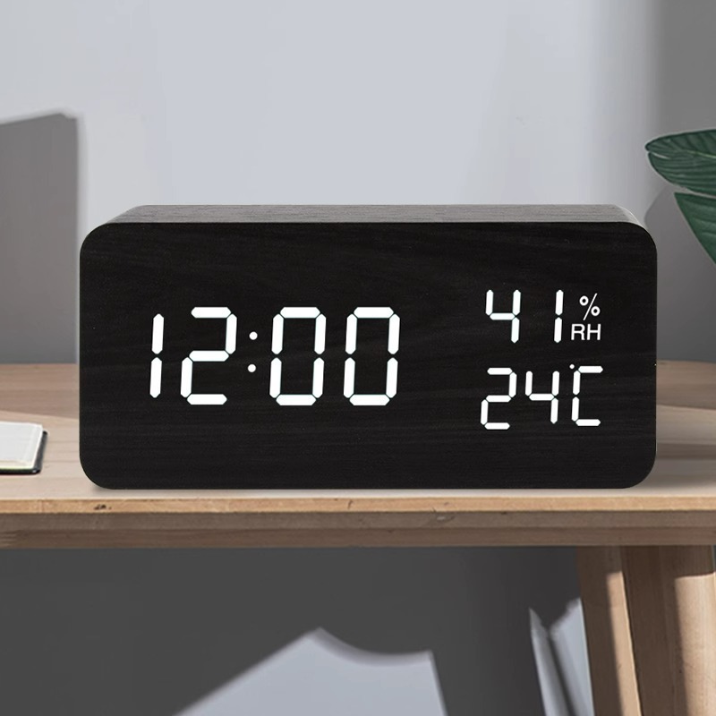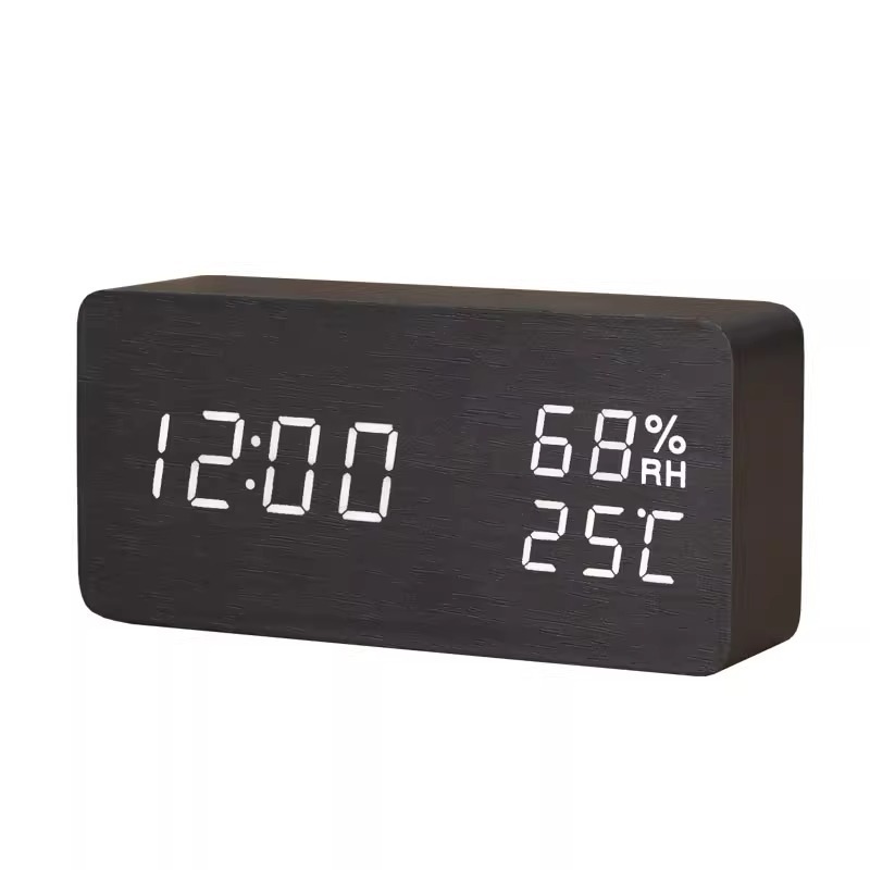 Модель температуры и влажности с черным деревом и белыми символами [перезаряжаемая модель]