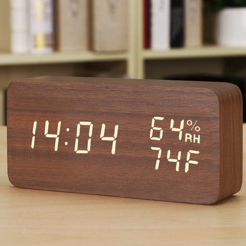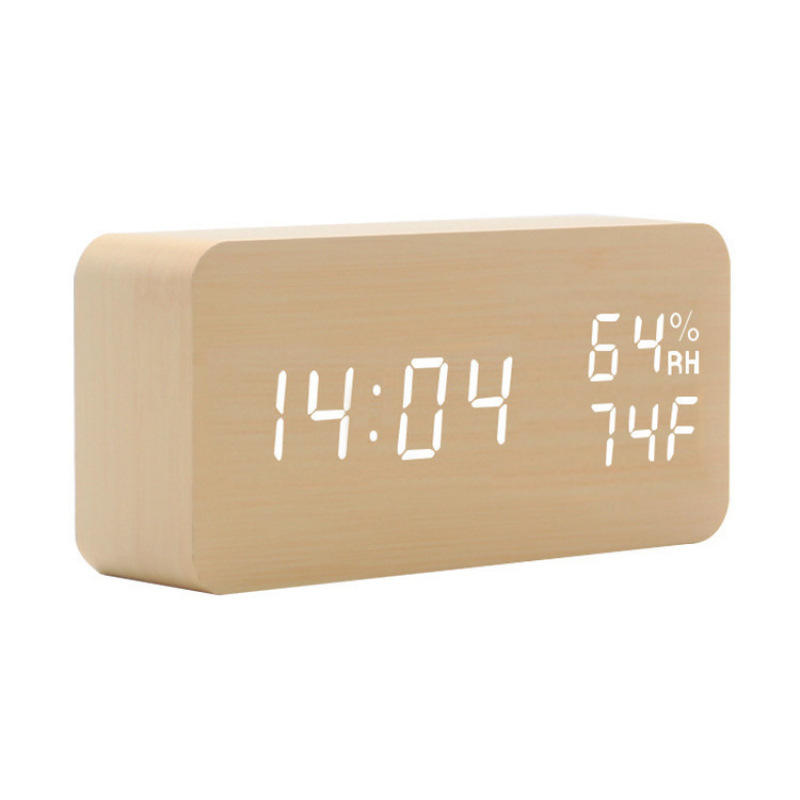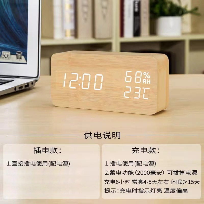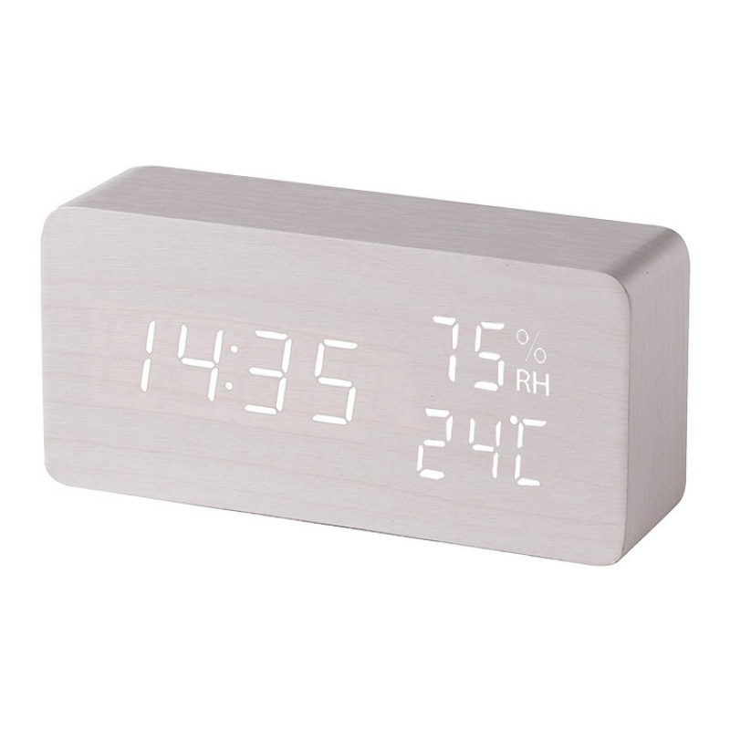 Модель температуры и влажности с белыми символами на бамбуковой древесине [перезаряжаемая модель]