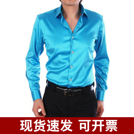 Главная страница > Мужская рубашка с длинным рукавом из искусственного шелка однотонного цвета, блестящая деловая рубашка для парикмахеров, диджеев и персонала ночных клубов, цвет «голубой озеро»
