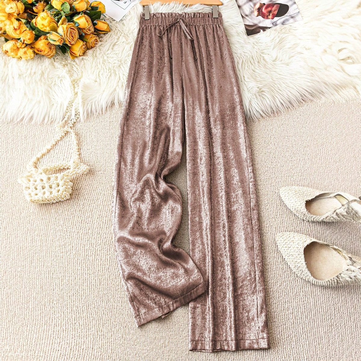 Главная страница > Женские брюки Amazon для трансграничной торговли: весенне-осенние, с эластичным поясом, золотистые, широкие, плиссированные, свободные, прямые, повседневные, стройнящие фигуру.