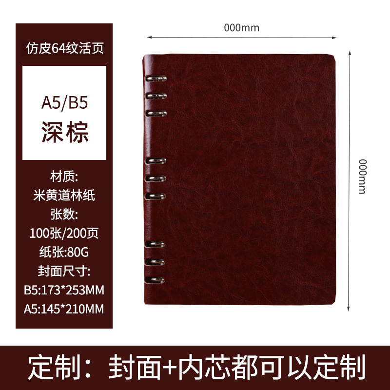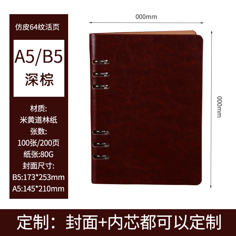 Кастомизированный блокнот B5 с отрывными листами, ретро-стиль, имитация кожи, тетрадь A5 с отрывными листами, толстая книга для офисного использования.