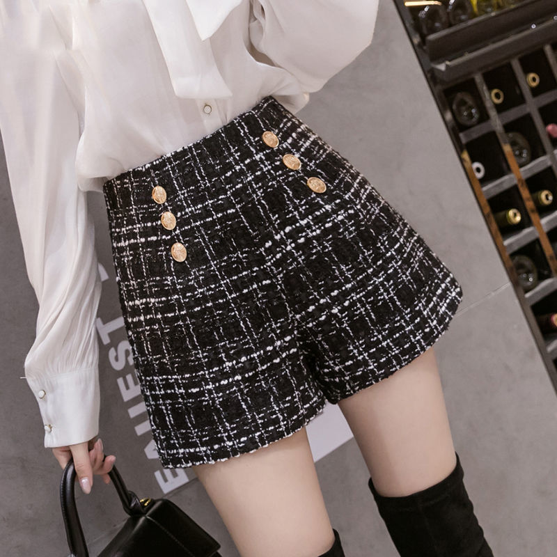 Главная страница > Новые осенне-зимние твидовые клетчатые широкие шорты с высокой талией для женщин, универсальные повседневные брюки трапециевидной формы для похудения.