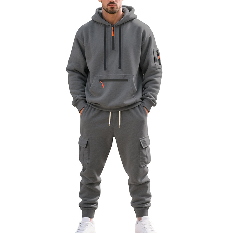 2025 трансграничный Amazon Европейский и американский новый мужской модный бренд на флисовой подкладке, утолщенный свитер с капюшоном и несколькими карманами, комплект из толстовки и спортивных штанов