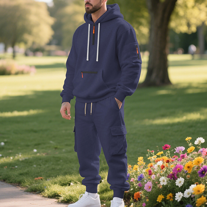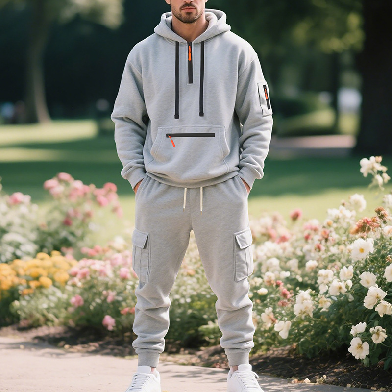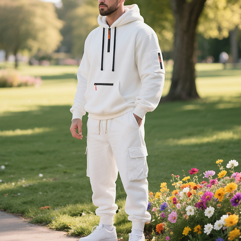 Главная страница > 2025 трансграничный Amazon Европейский и американский новый мужской модный бренд на флисовой подкладке, утолщенный свитер с капюшоном и несколькими карманами, комплект из толстовки и спортивных штанов