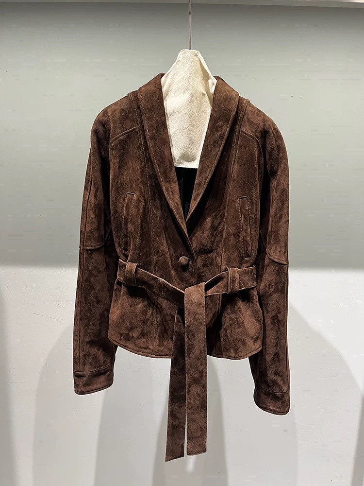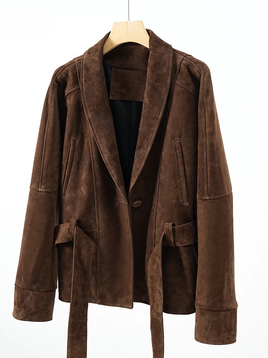 Главная страница > Высококачественная женская куртка из натуральной замши из козьей кожи от Haining, пальто с затягивающей талией, тренд осени и зимы 2025 года.