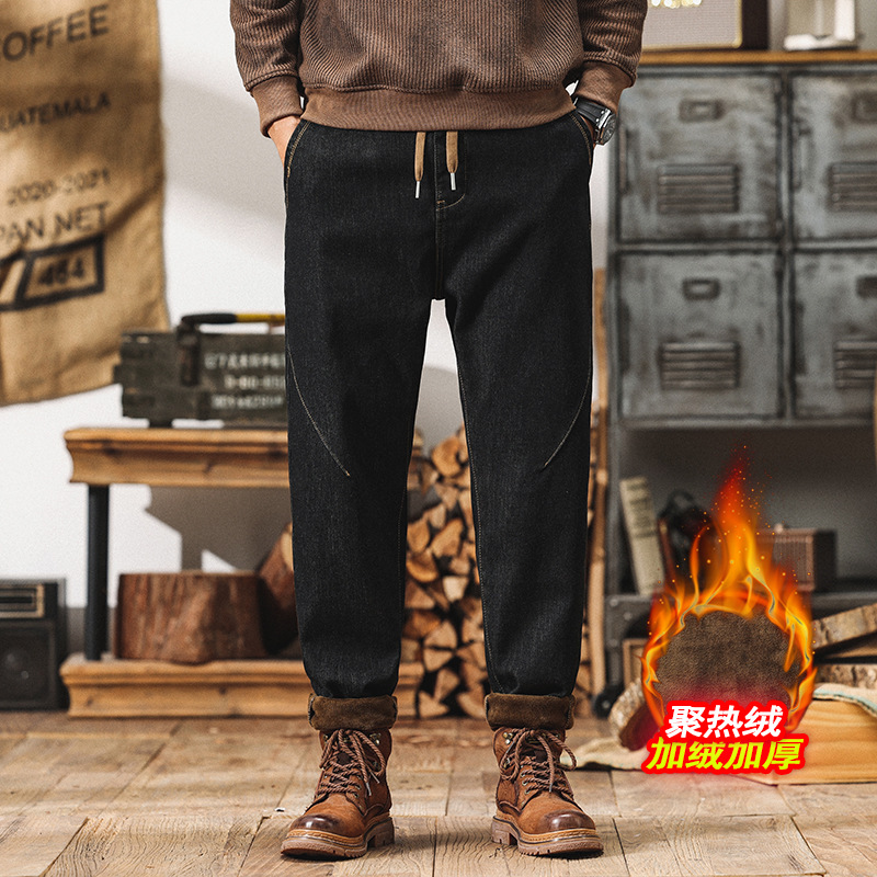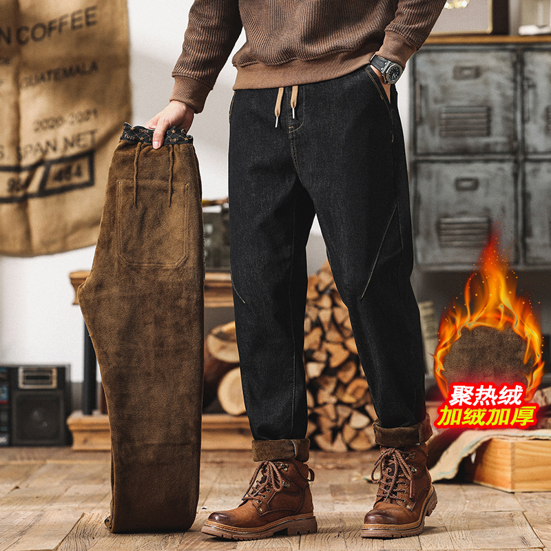 Главная страница > Мужские зимние новые джинсы больших размеров на флисовой подкладке, мужские свободные толстые теплые блестящие шаровары с эластичной талией