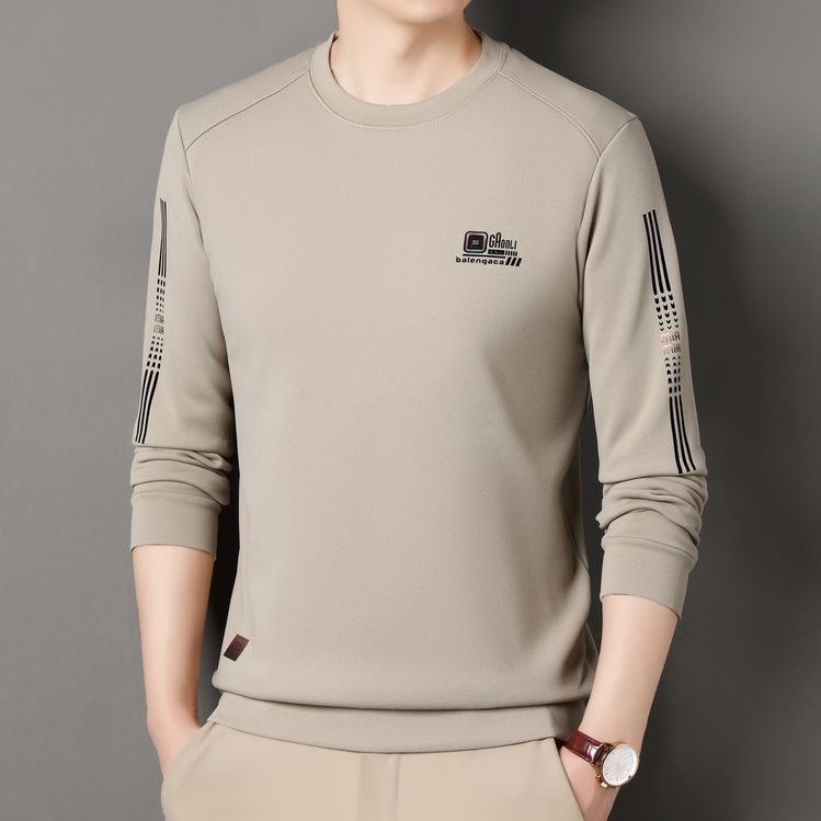 Толстовка для мужчин ранней осенью новый бархатный толстый длинный рукав повседневный дикий круглый воротник тонкая рубашка нижняя рубашка