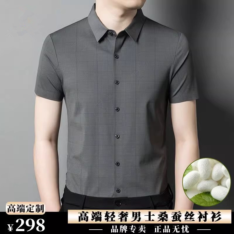 Главная страница > Высококачественная шелковая рубашка для мужчин с короткими рукавами бизнес-повседневная тонкая рубашка летняя новая бесшовная безглажная рубашка с половиной рукава