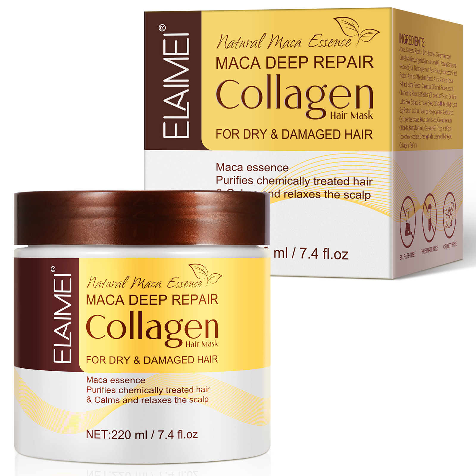 Маска для волос ELAIMEI с коллагеном и макой для глубокого восстановления, 220 мл