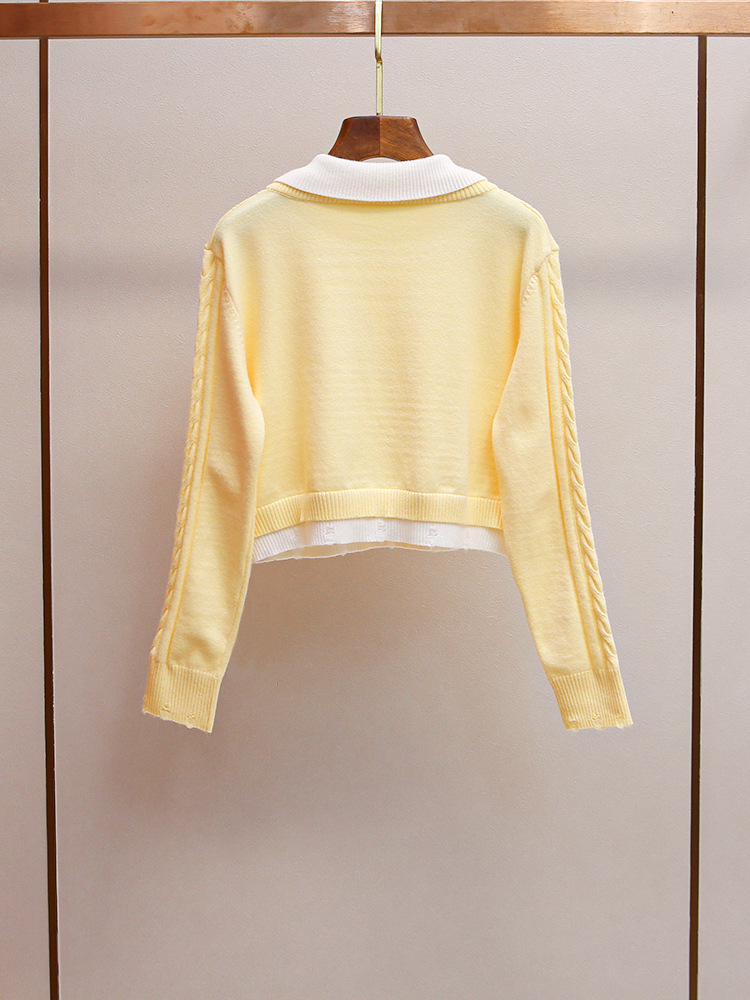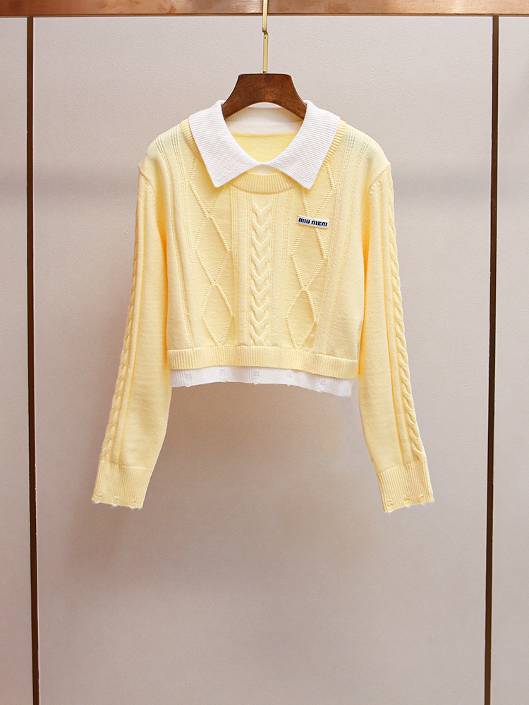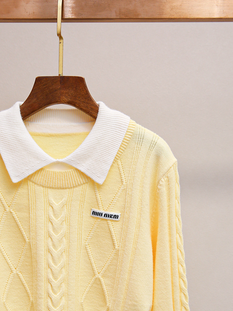 Главная страница > Женская одежда премиум-класса из Шэньчжэня Нанью, осенняя новинка, в корейском стиле, омолаживающий, студенческий стиль, имитация двухслойного трикотажа с отложным воротником, для женщин.