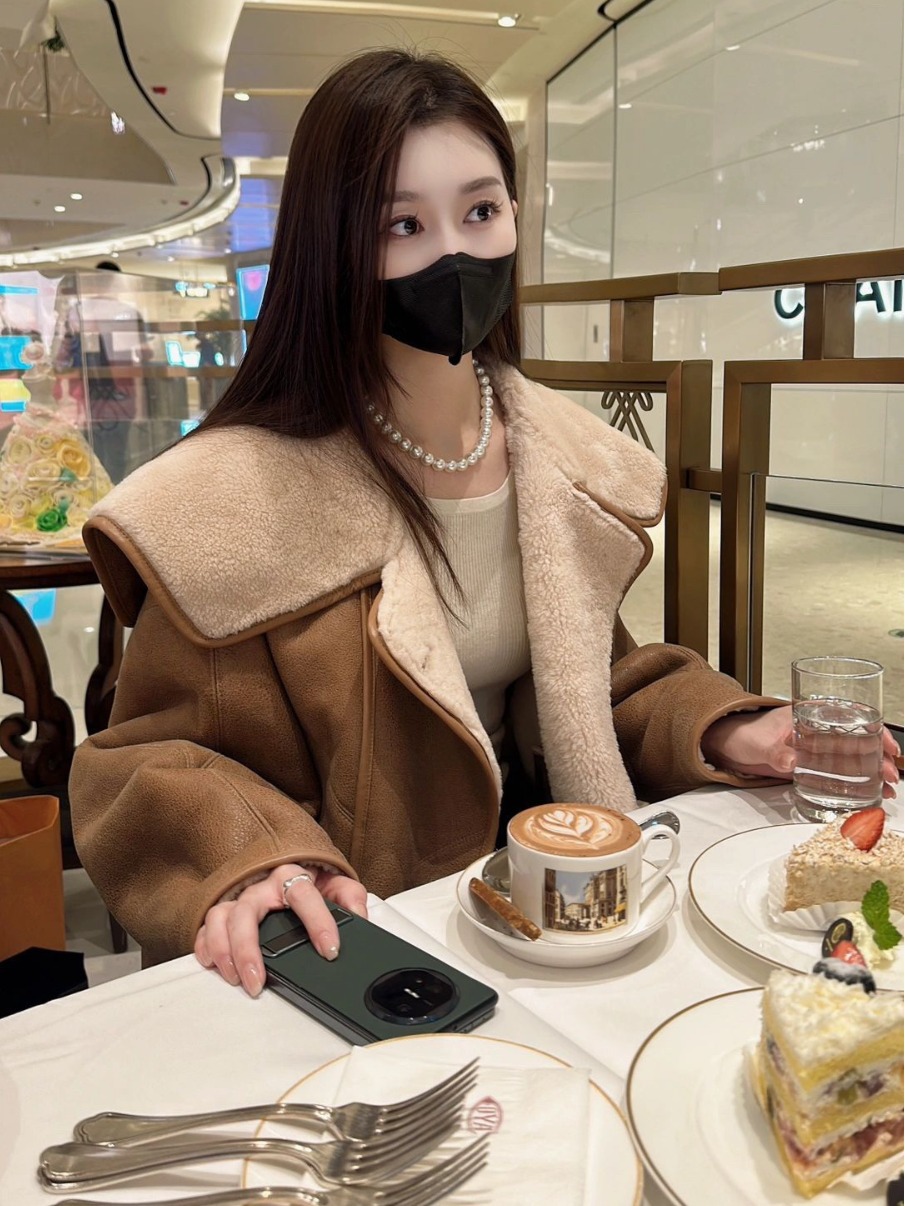 Главная страница > Зимнее винтажное простое утолщенное пальто из меха, женская светло-коричневая куртка из овечьей шерсти в Корейском стиле с большими лацканами