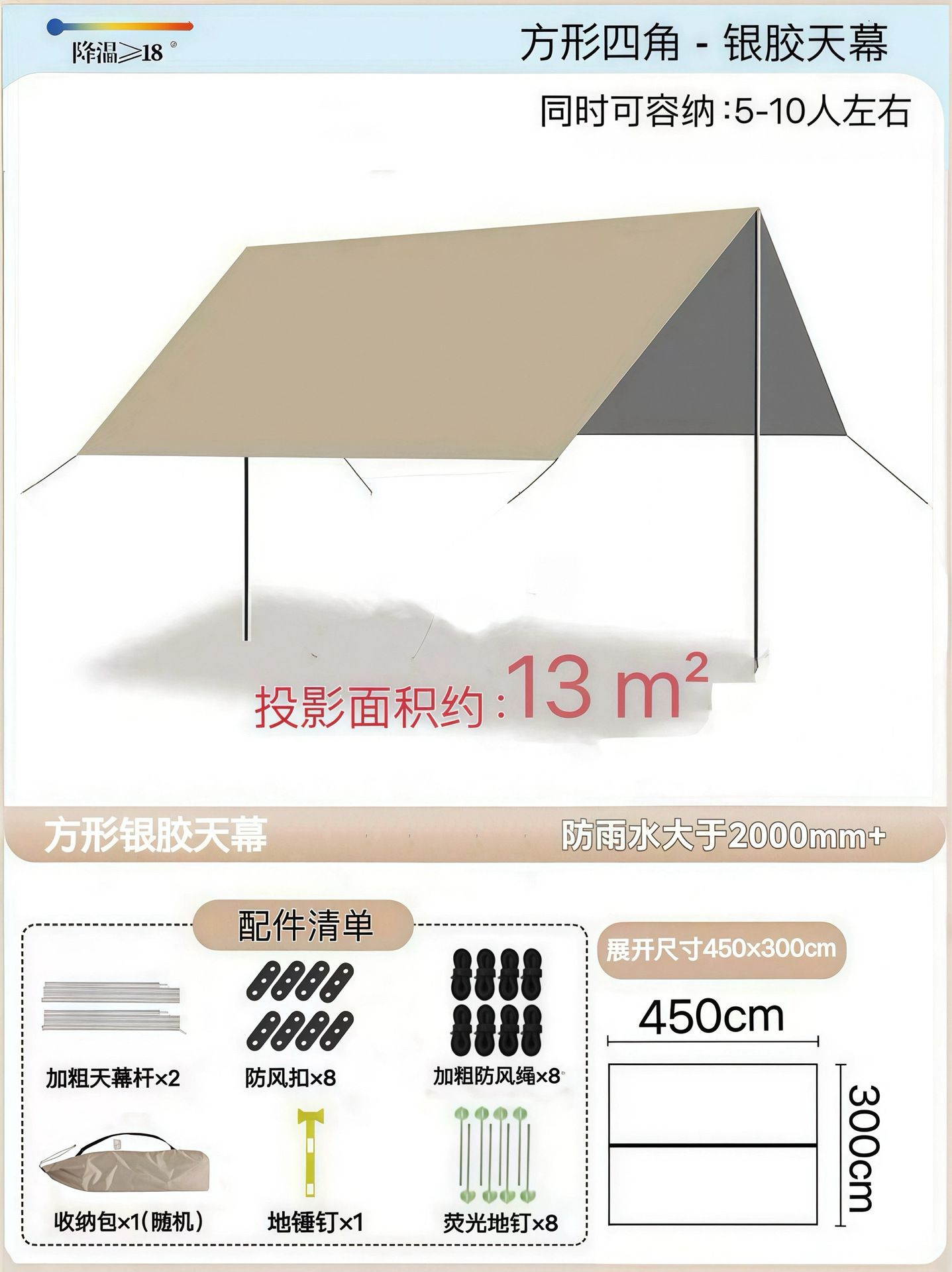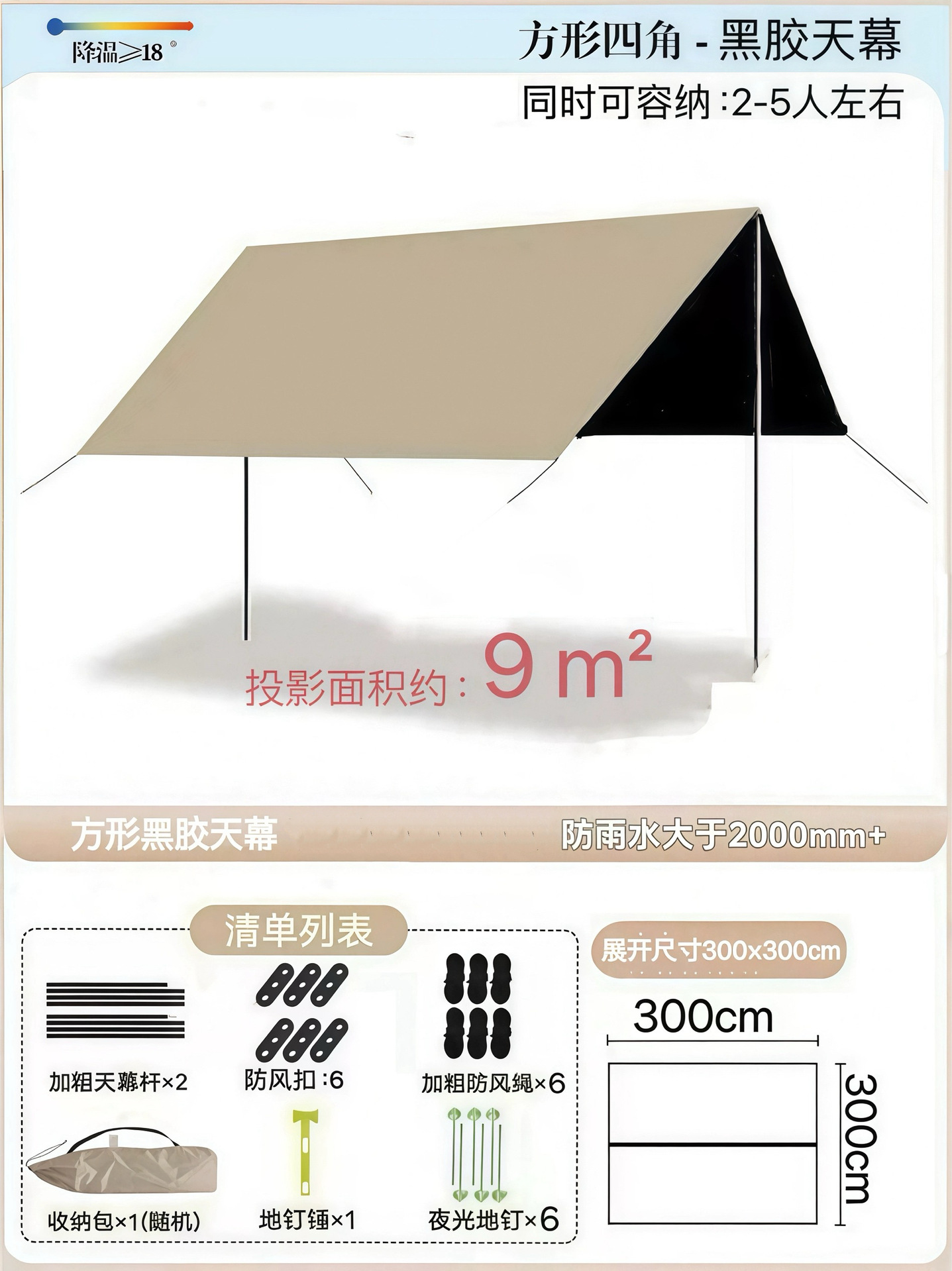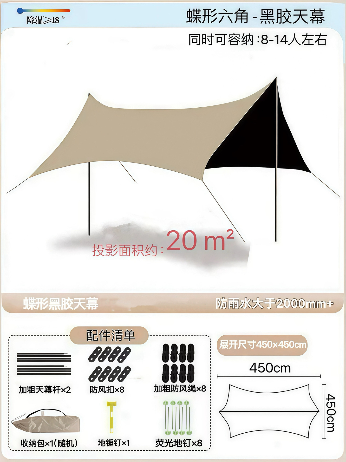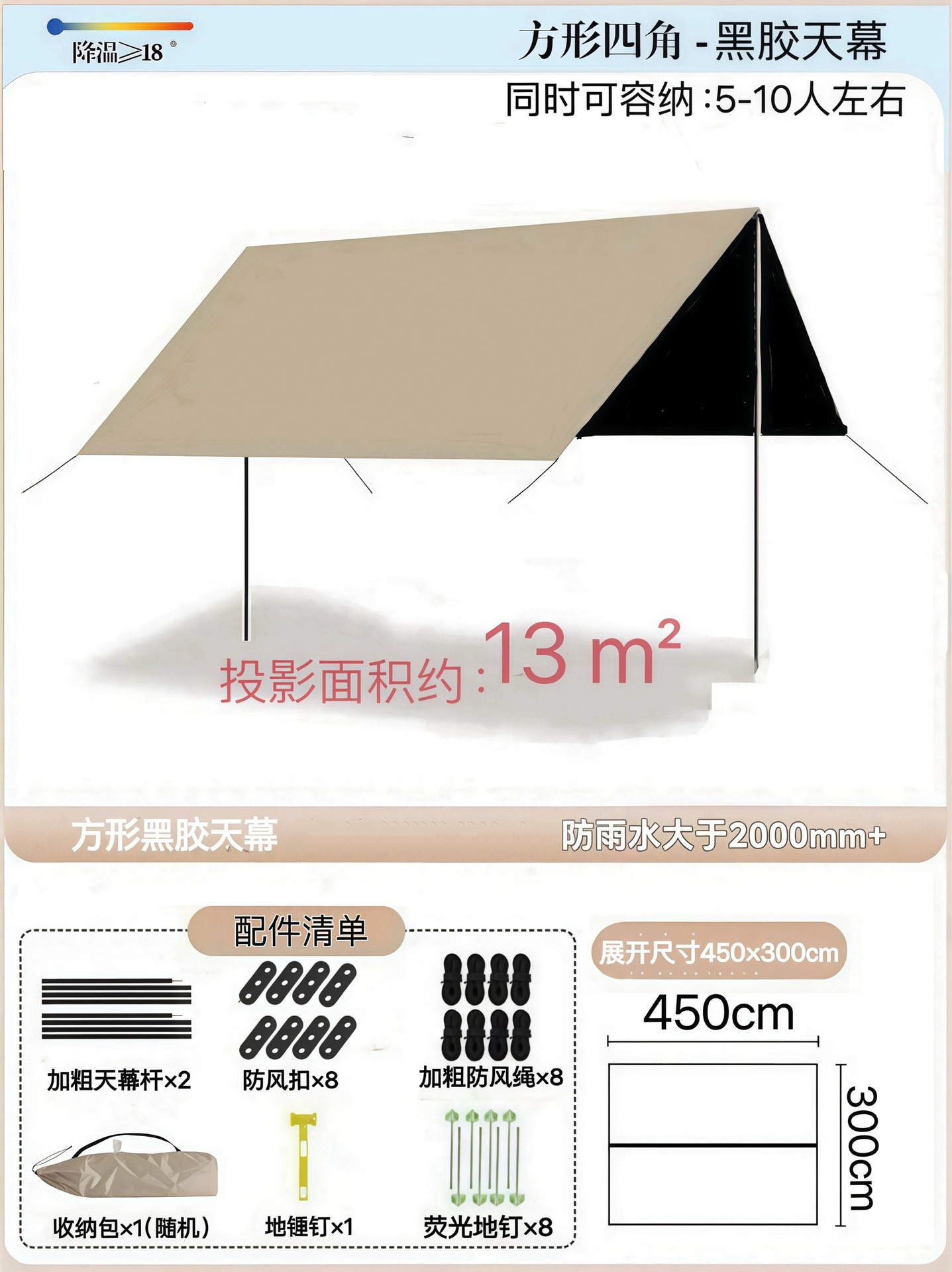 Наружный тент с серебряным покрытием, наружная защита от солнца, черный пластиковый четырехполюсный навес, оборудование для кемпинговой палатки, защита от ультрафиолета и защита от дождя.