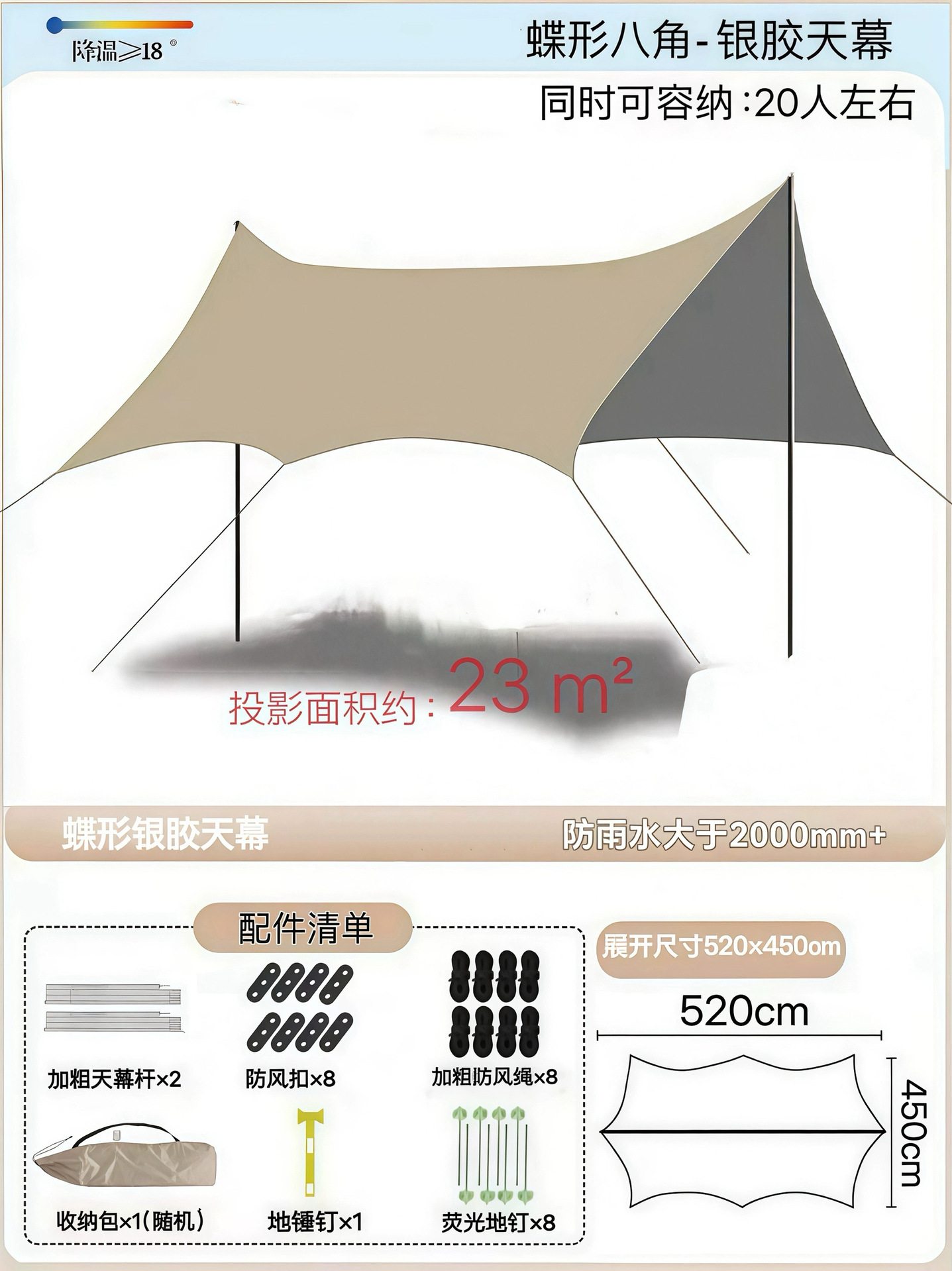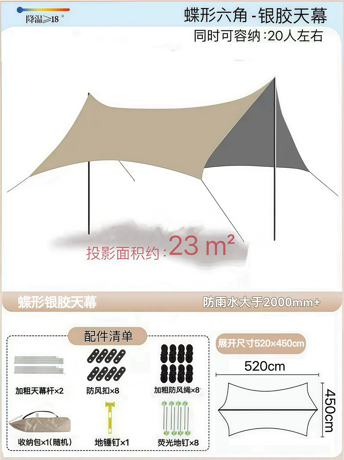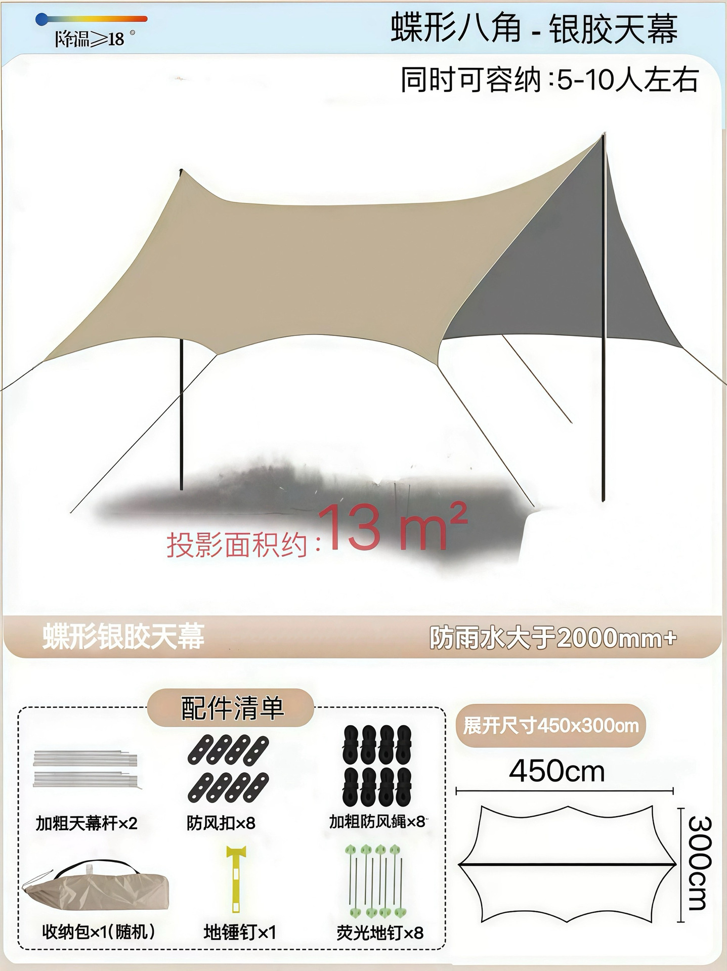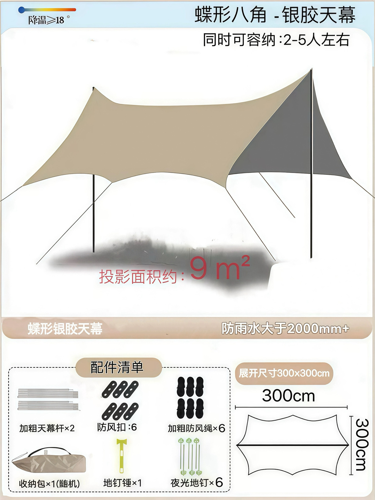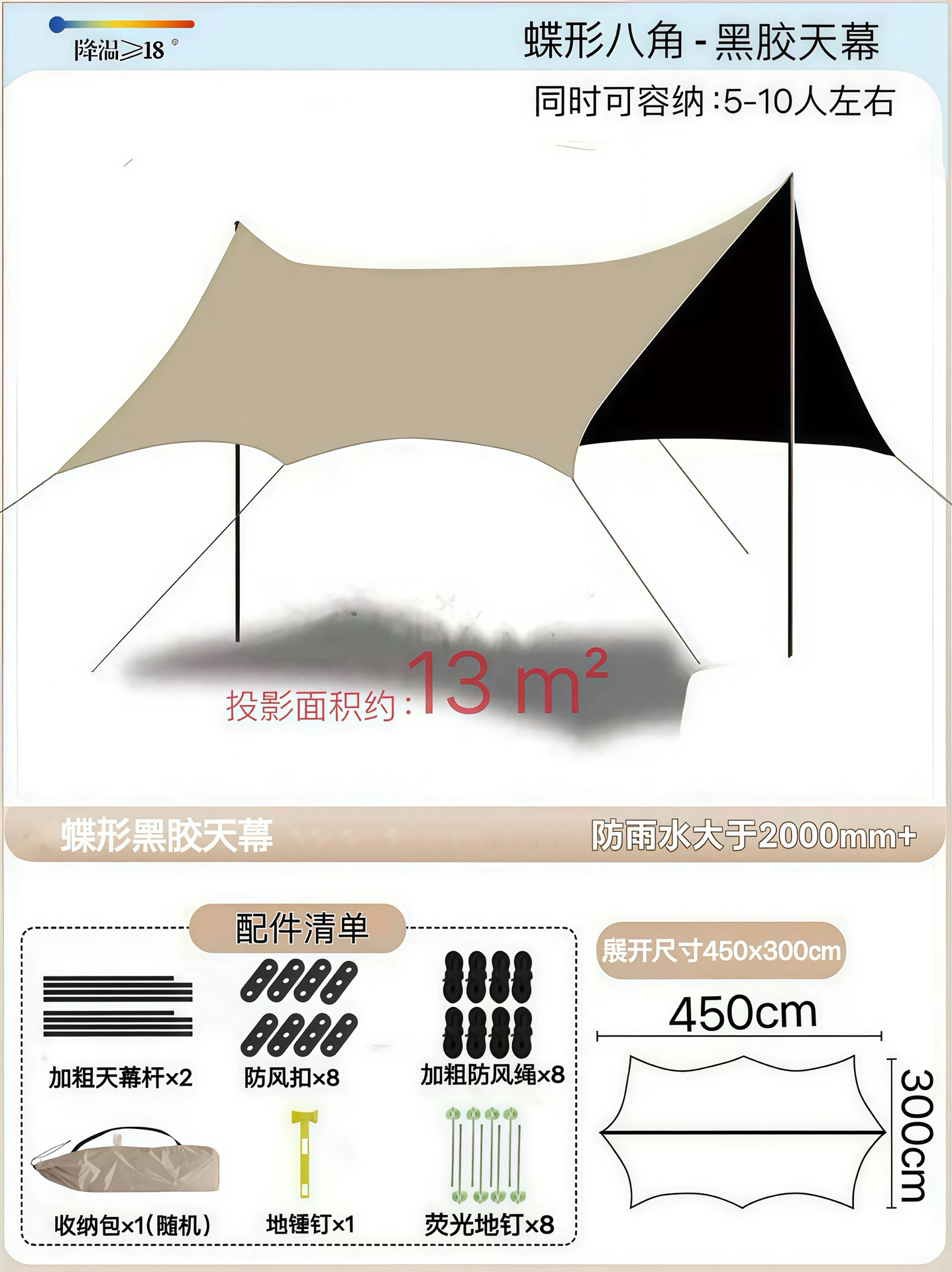 Наружный тент с серебряным покрытием, наружная защита от солнца, черный пластиковый четырехполюсный навес, оборудование для кемпинговой палатки, защита от ультрафиолета и защита от дождя.