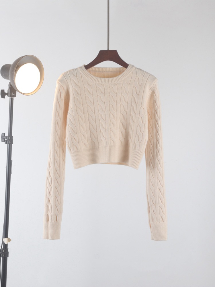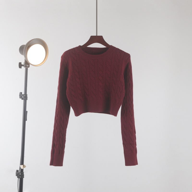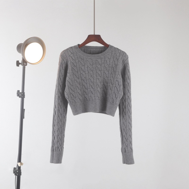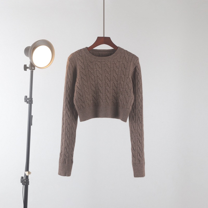 Главная страница > Женский укороченный свитер крупной вязки с высокой талией, осенняя новинка 2025 года, винтажный свободный пуловер с круглым вырезом и длинными рукавами.