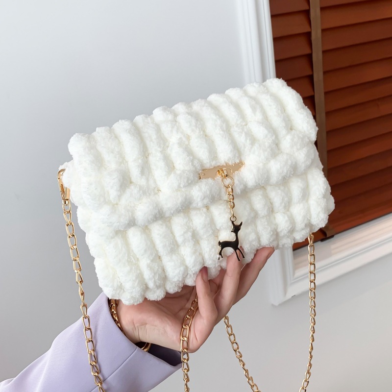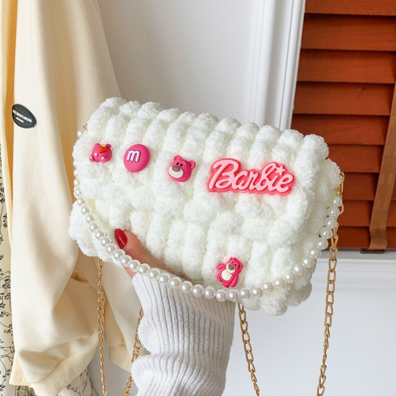 Белый [патч с буквой] материальный пакет + цепочка + Портативный жемчуг