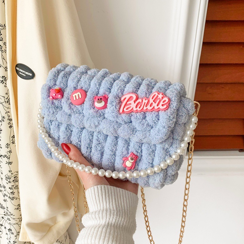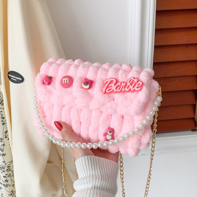 Светло-Розовый [письмо патч] Материал пакет + цепь + Перл портативный