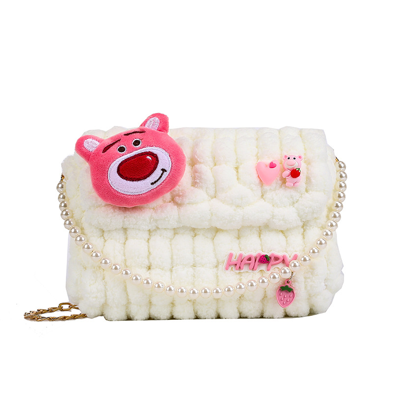 Белый [клубничный медведь стиль] материальный пакет + Учебник + цепь + Перл портативный