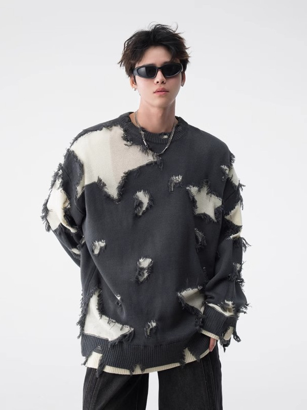 Главная страница > Прилив нишевых волос дизайн свитер для мужчин и женщин весной и осенью ins свободный подол нерегулярный трикотаж