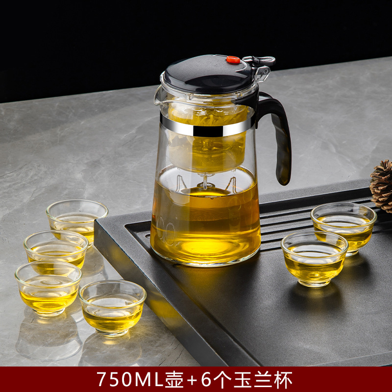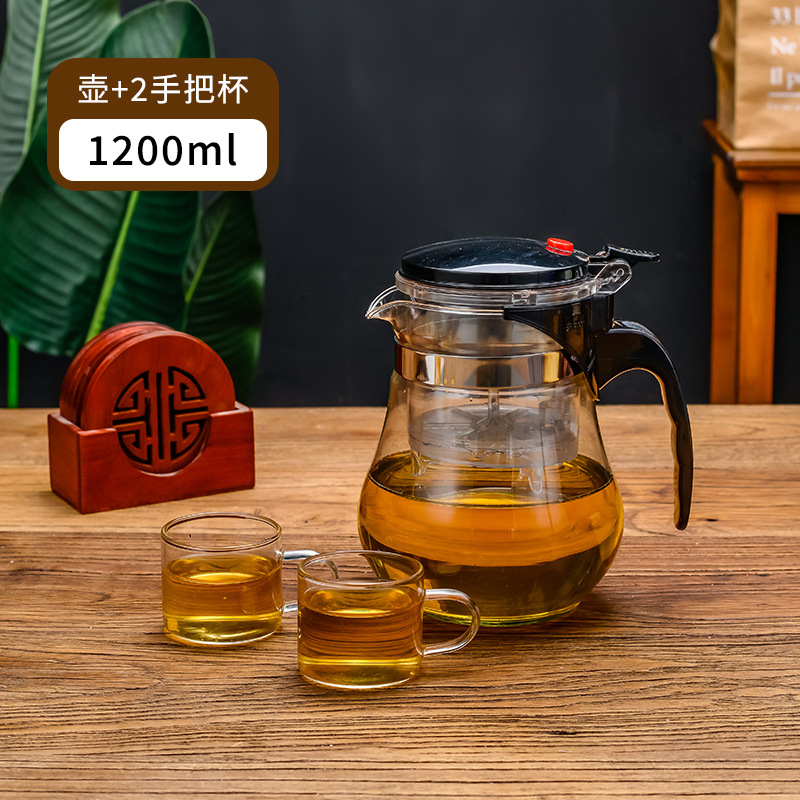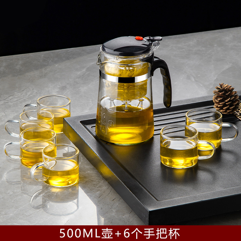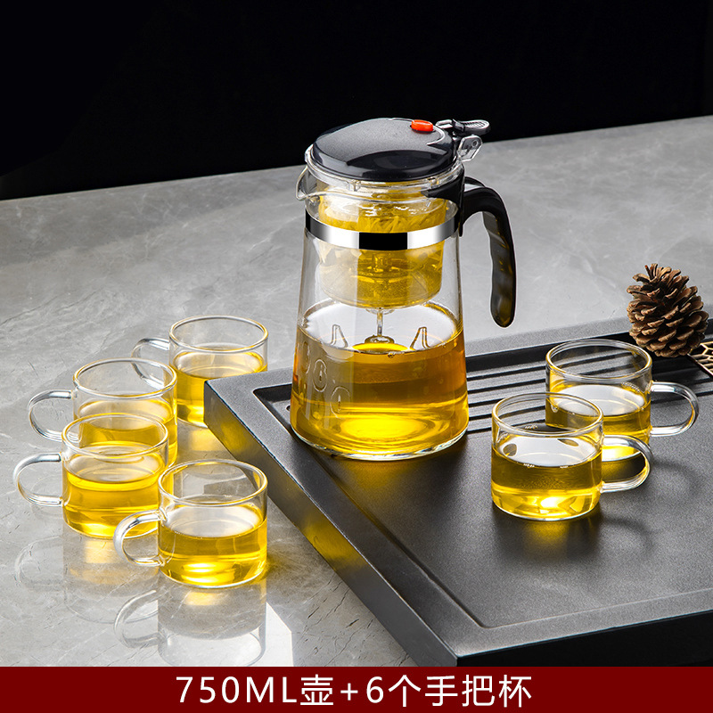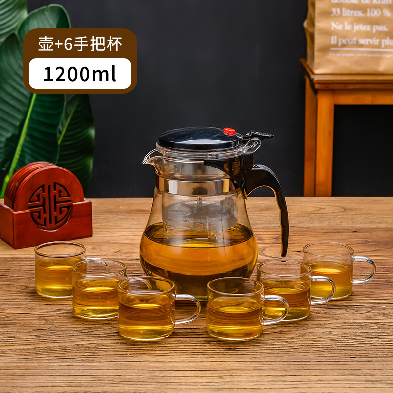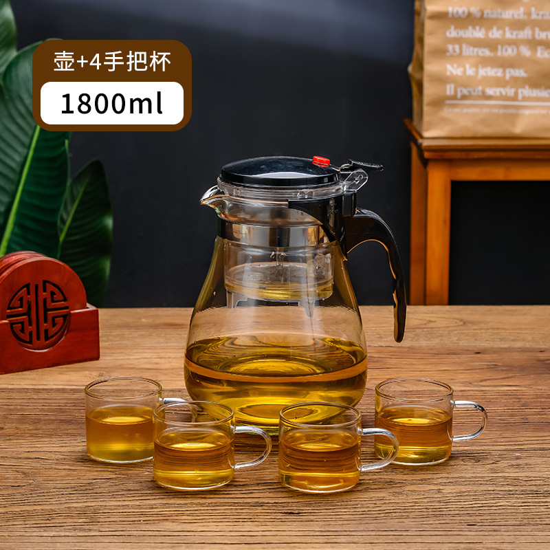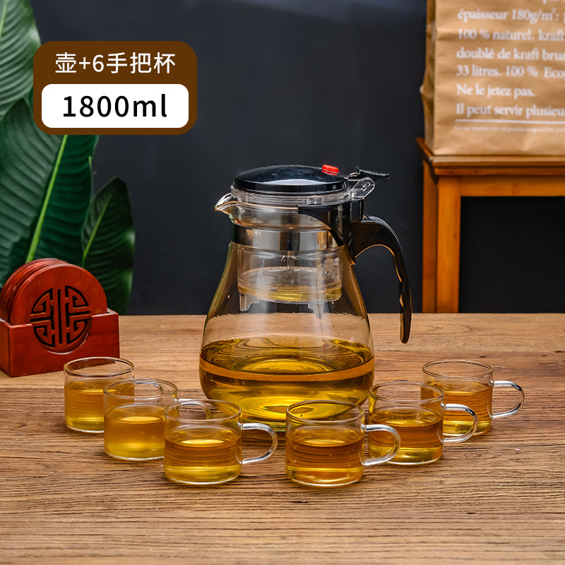 1800 мл утолщённый элегантный чайник + 6 чашек с ручками [фильтрация одним нажатием].